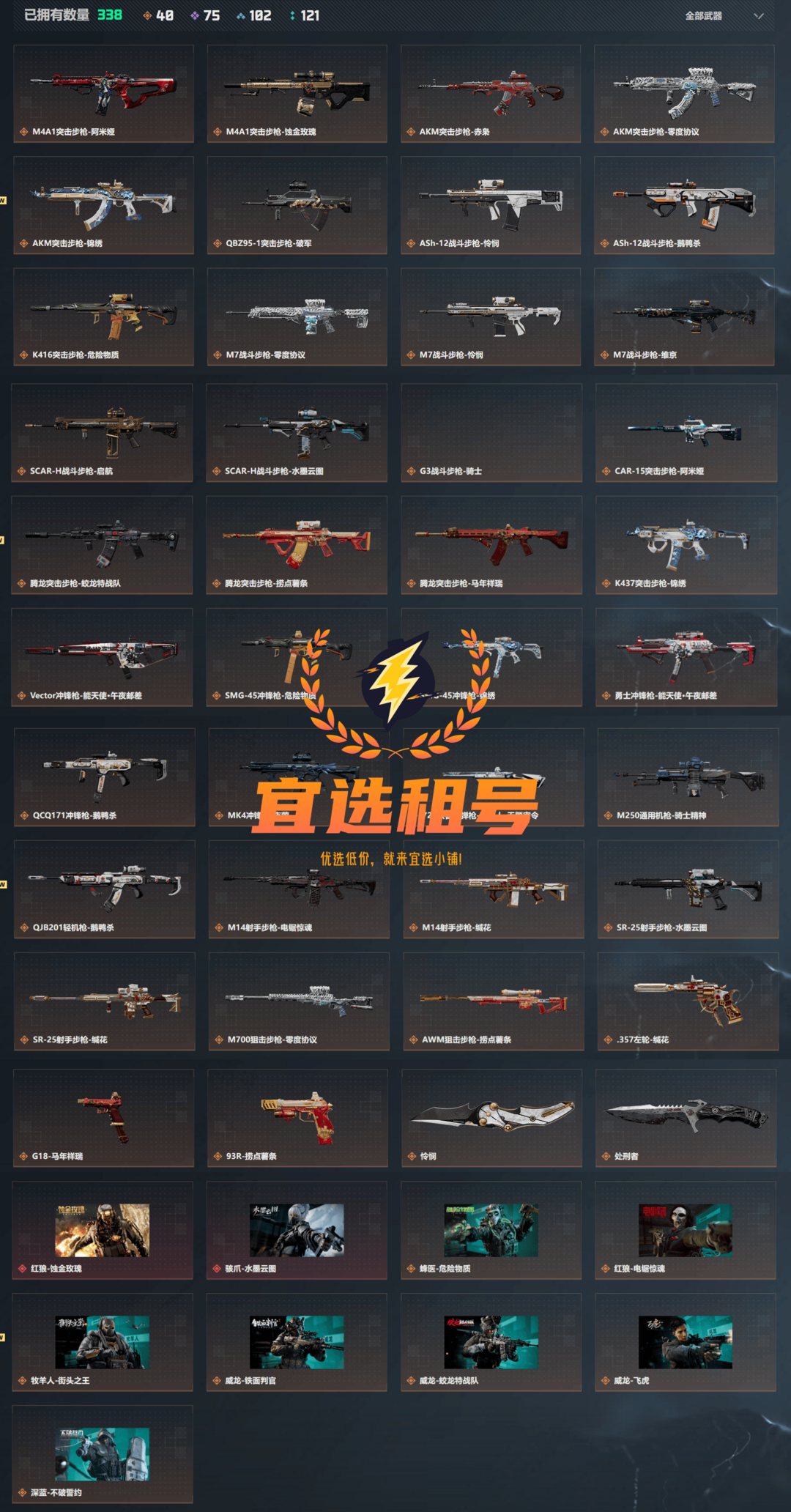 装备描述:!!部分皮肤未显示,以实际描述为准!! 本人已委托所在市区律所备案网络财产信息,任何因开挂诈骗等原因导致的账号封禁,一律报警并联合律所向法院起诉,若为高价值账号则可能触及刑法! 互联网并非法外之地,违规租号的个人信息随时可通过平台追查,绝不姑息,dma,鼠标宏,弱网,ai自瞄等外挂一律可查,追究到底!
