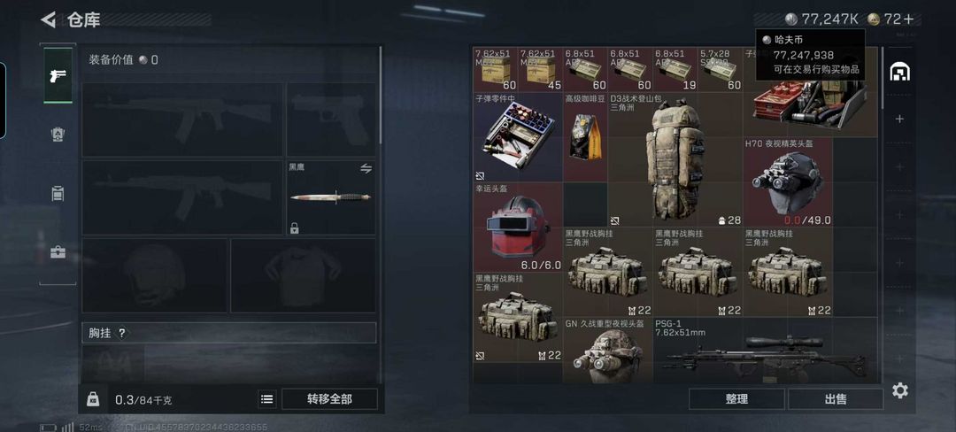 千万哈夫币 K03/ 7730万哈弗币-保险4格-体力7负重6-16头-黑鹰-带妹护航首选
