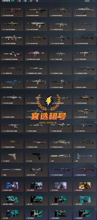 皮肤号 无币极品皮肤号⚡4红3刀60金⚡3典藏枪皮命运电玩⚡战斗部门7+7⚡通行证已开⚡宜选租号