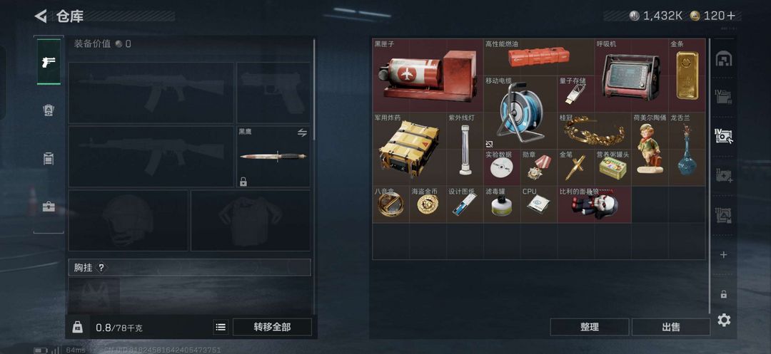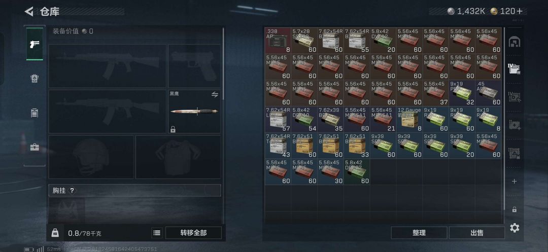 皮肤号 刘涛头50.甲6套甲43. 5套甲若干 金弹着5.56/45)1117发 aw子弹八发