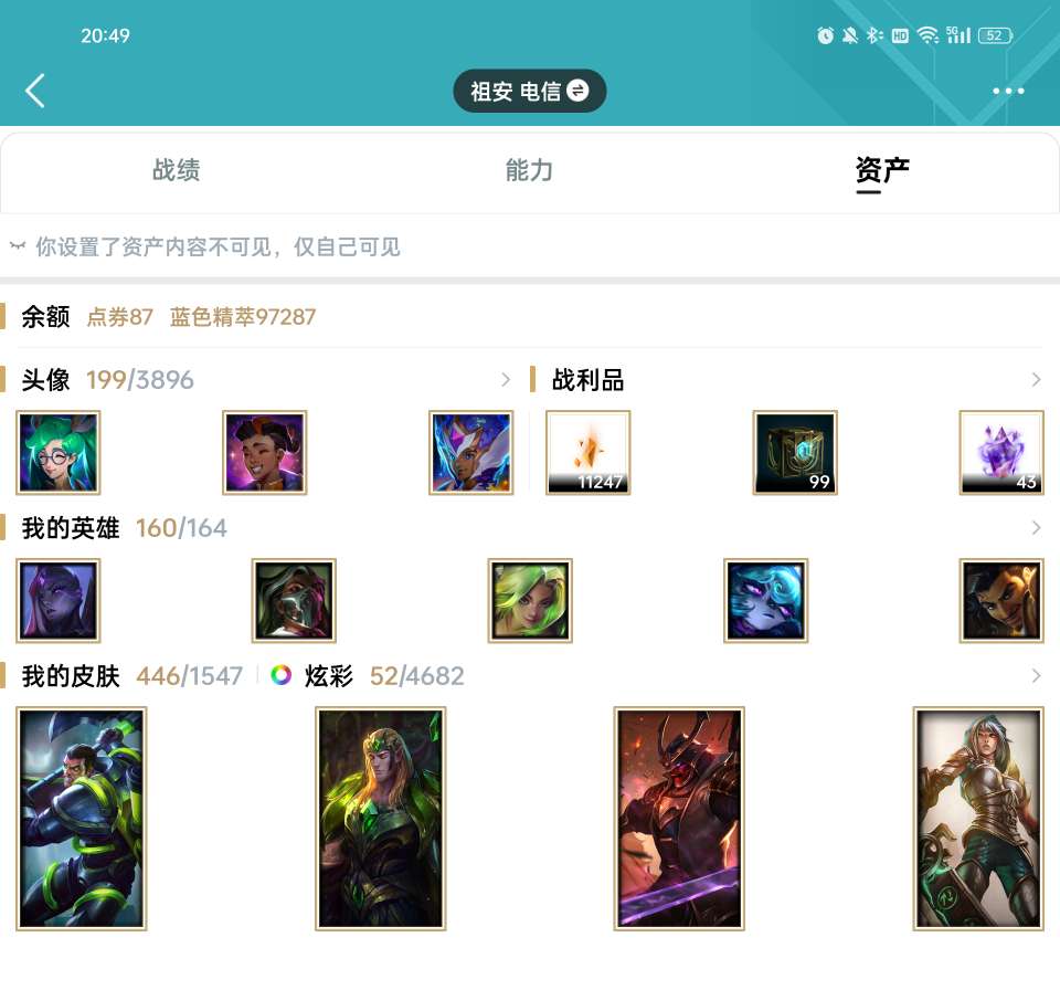 装备描述:近500皮,无段位,祖安大舞台虐菜号,全英雄