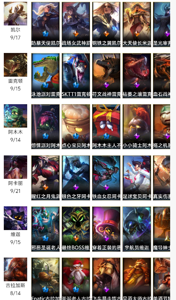 装备描述:EZ未来战士DJ娑娜皇子海克斯安妮十周年冰鸟神凰行者2终极 3神话 2臻彩 76限定 38传说 123史诗 432皮肤 30炫彩 170英雄