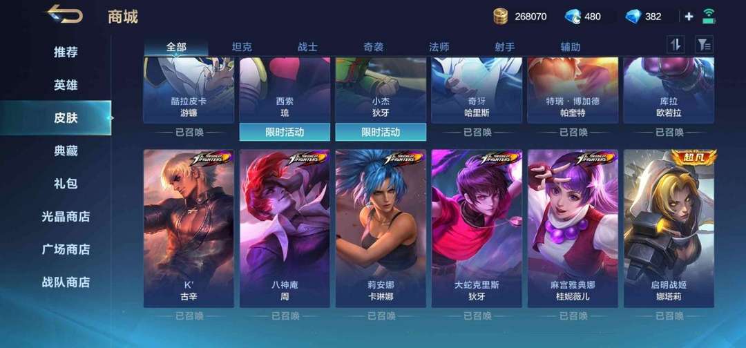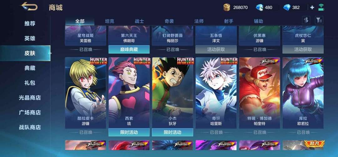 222皮肤,拳皇全联动都有什么皮肤都有,全人物,各种限定,自己看图 周卡还有两年