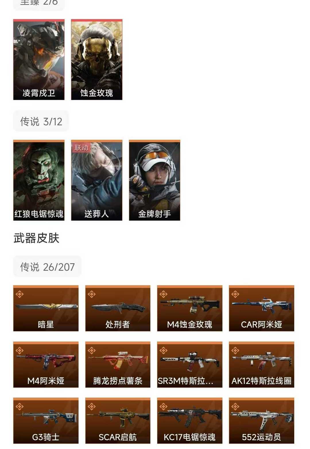 皮肤号 凌霄戍卫,蚀金玫瑰,暗星,26款传说枪皮,s8赛季3×3保险箱