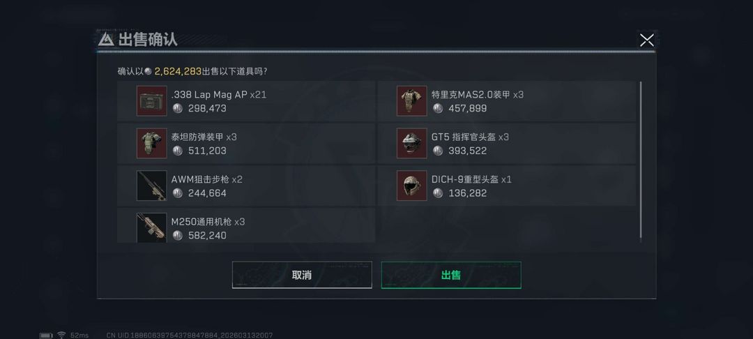 纯币号,体力负重均6级,仓库7级,AW21发,六甲6套,六头四个。现币一亿零一百万打完为止。