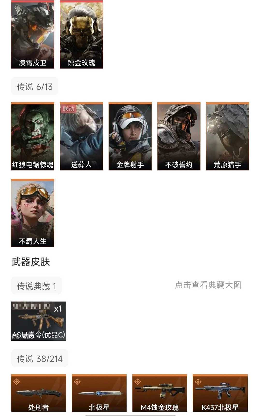 皮肤号 as典藏枪北极星凌霄戍卫,蚀金玫瑰,8干员,38款传说枪皮