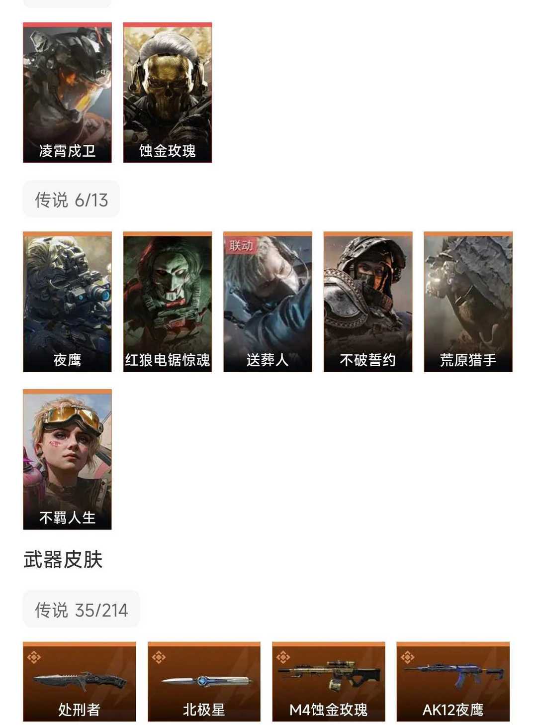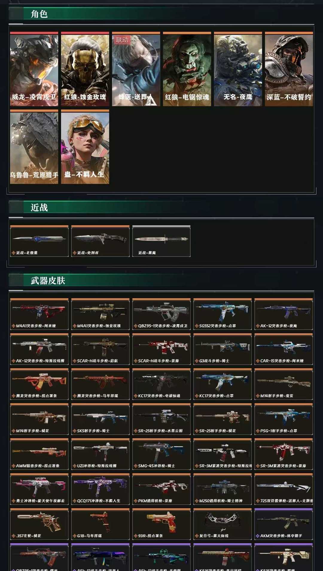 皮肤号 北极星凌霄戍卫,蚀金玫瑰,35款传说枪皮,8干员