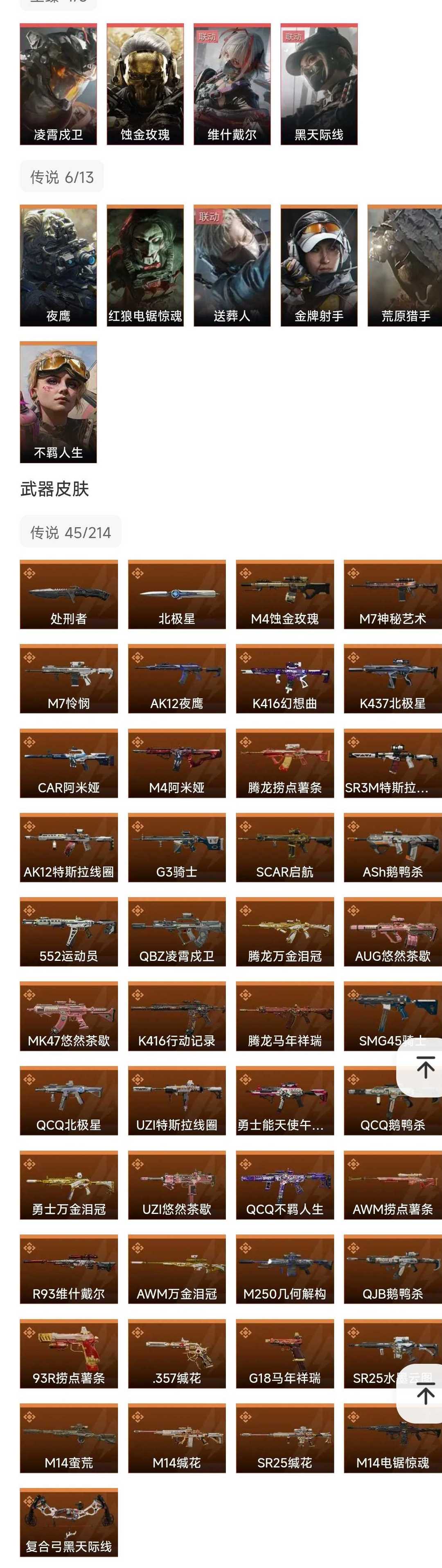 皮肤号 4红北极星凌霄茂卫,蚀金玫瑰,维什戴尔,45款传说枪皮
