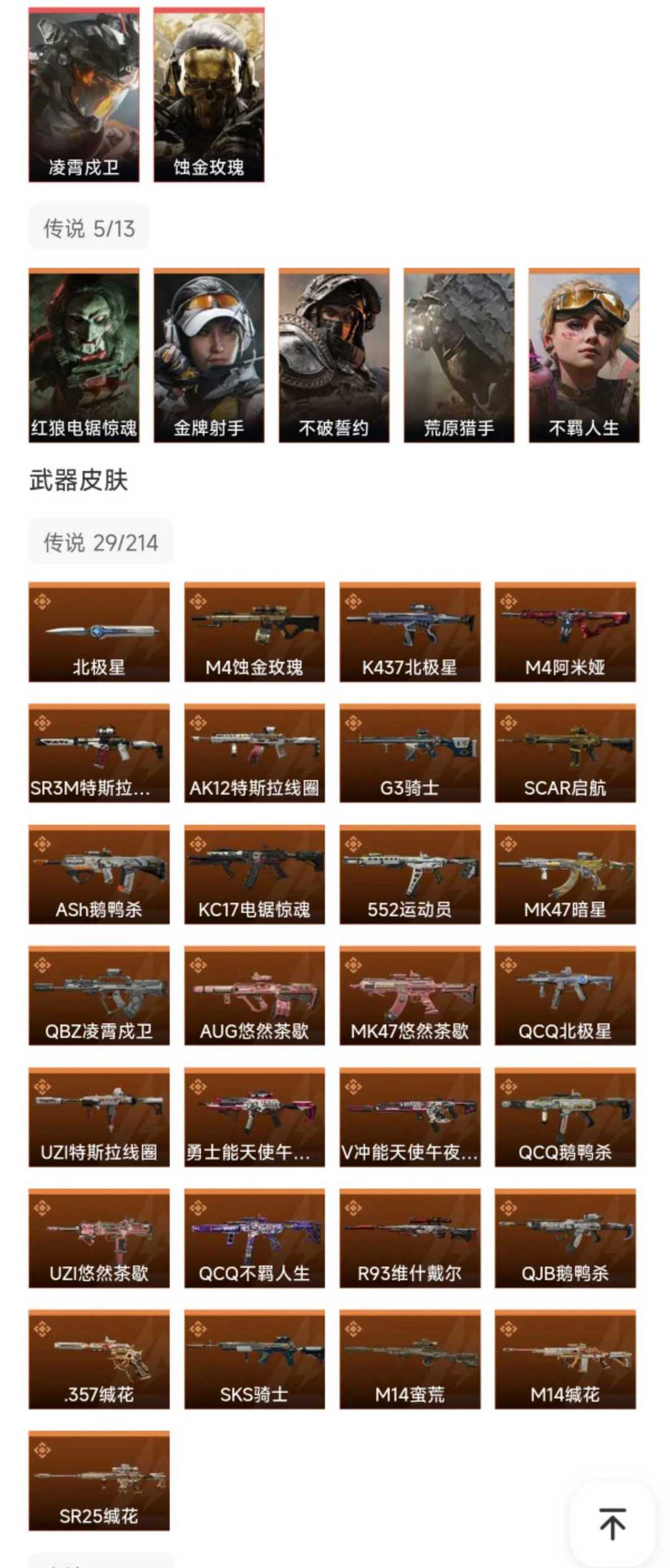 皮肤号 北极星凌霄茂卫,蚀金玫瑰,29款传说枪皮