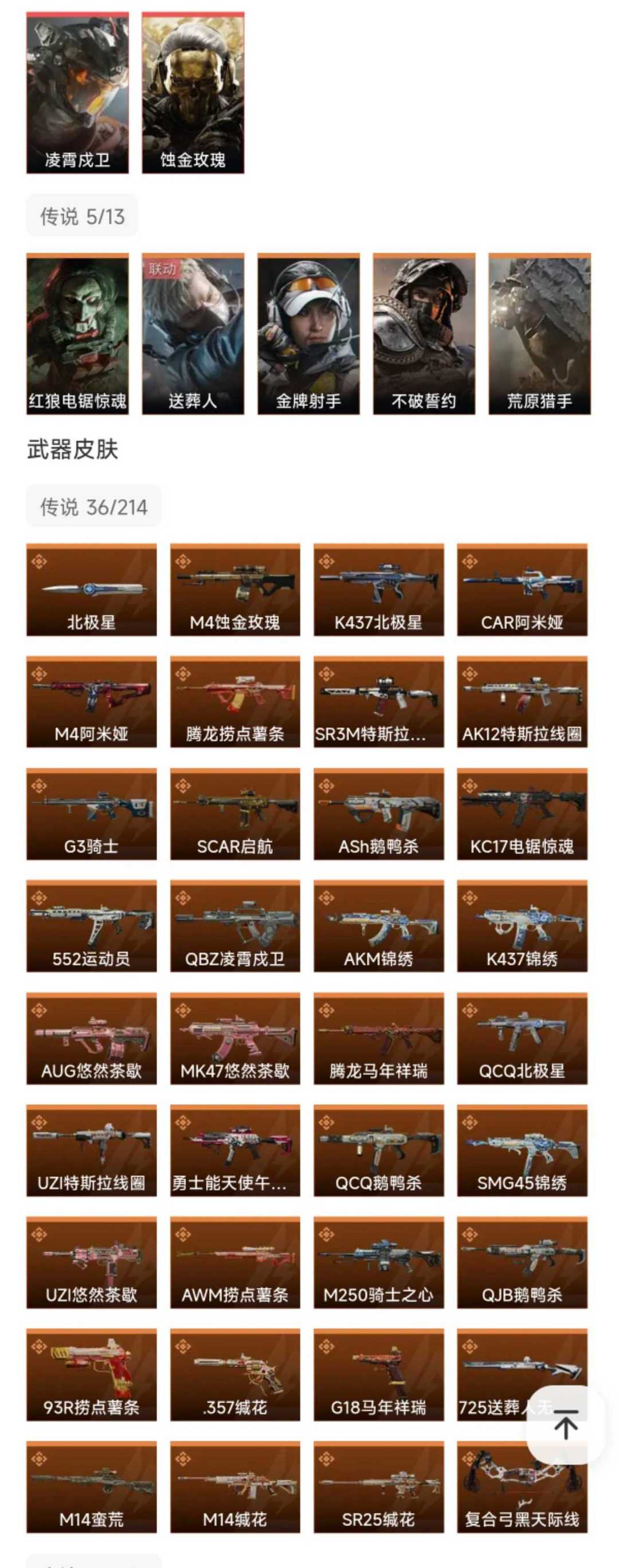 皮肤号 北极星凌霄茂卫,蚀金玫瑰,36款传说枪皮