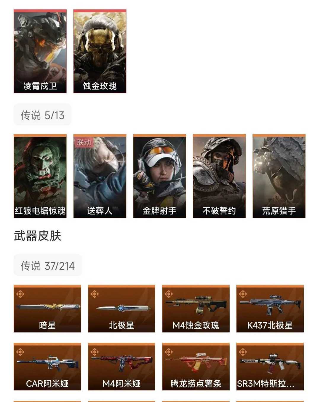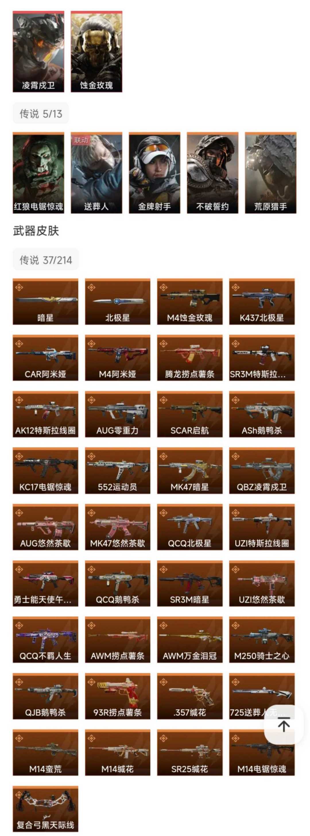 皮肤号 暗星北极星凌霄茂卫,蚀金玫瑰,37款传说枪皮