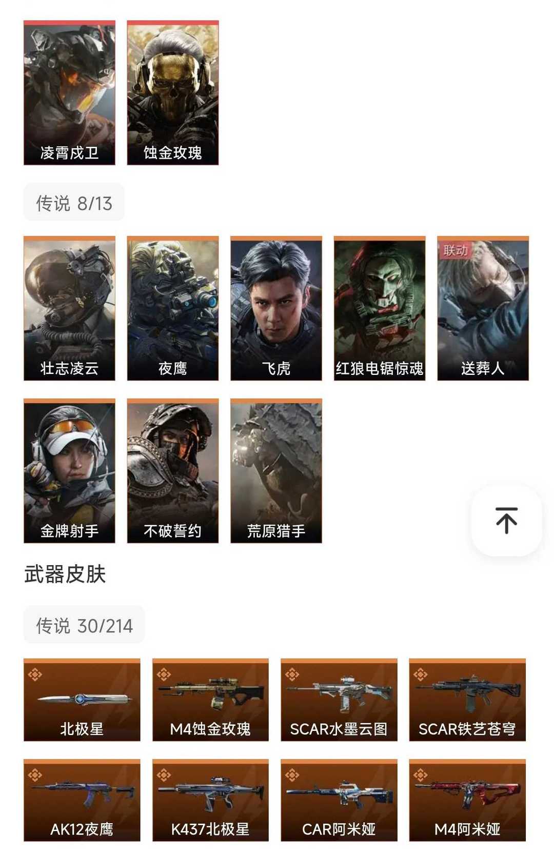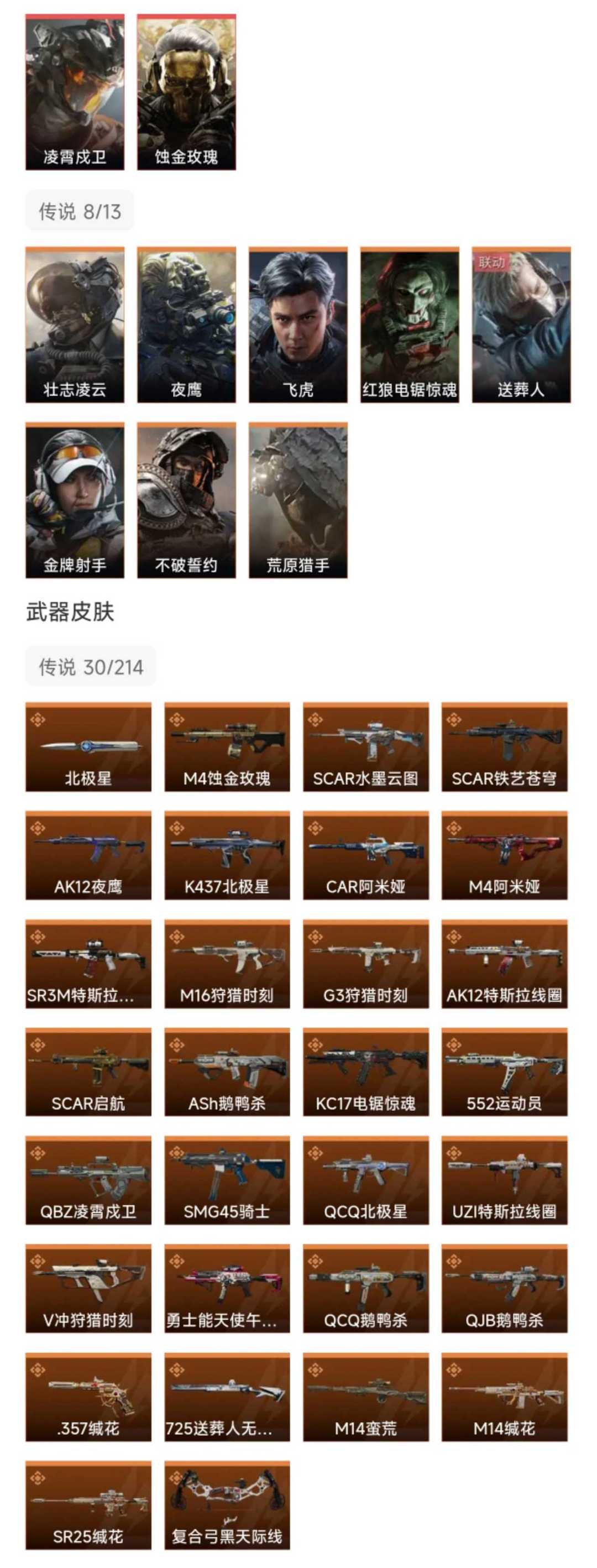 皮肤号 北极星凌霄茂卫,蚀金玫瑰,吴彦祖,10干员,30款传说枪皮