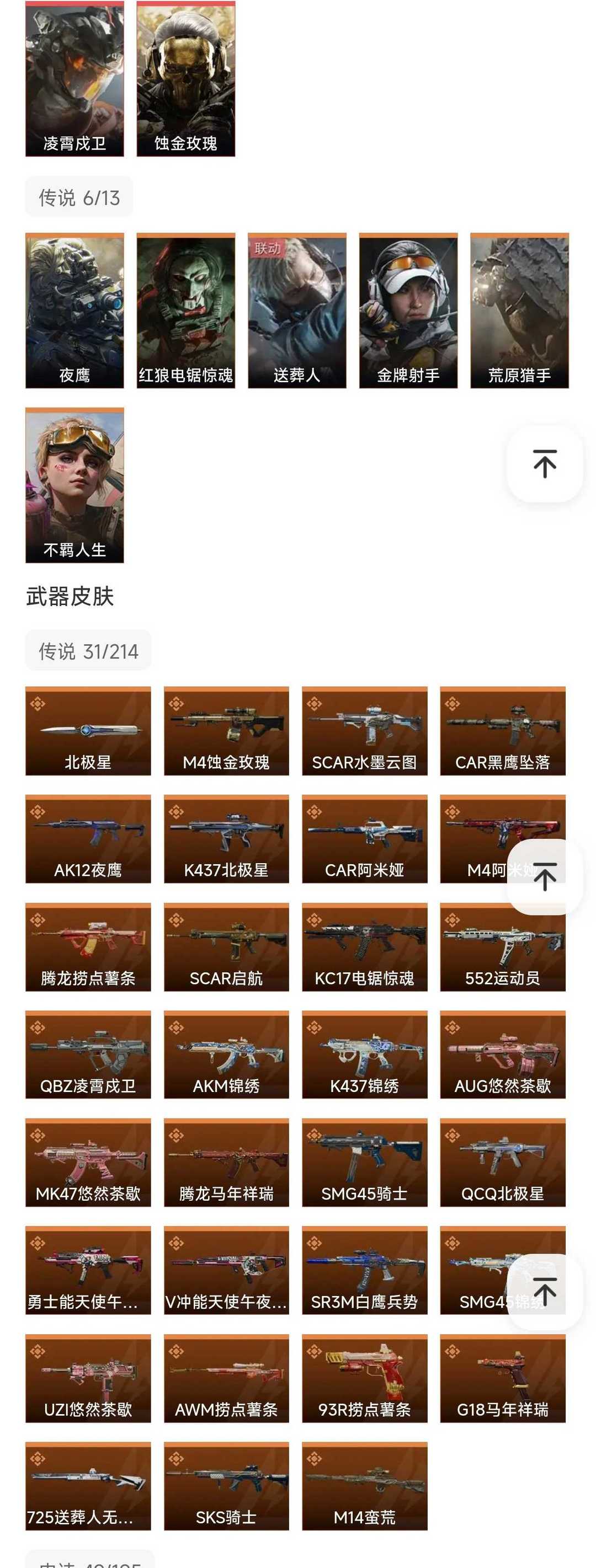 皮肤号 北极星凌霄茂卫,蚀金玫瑰,31款传说枪皮