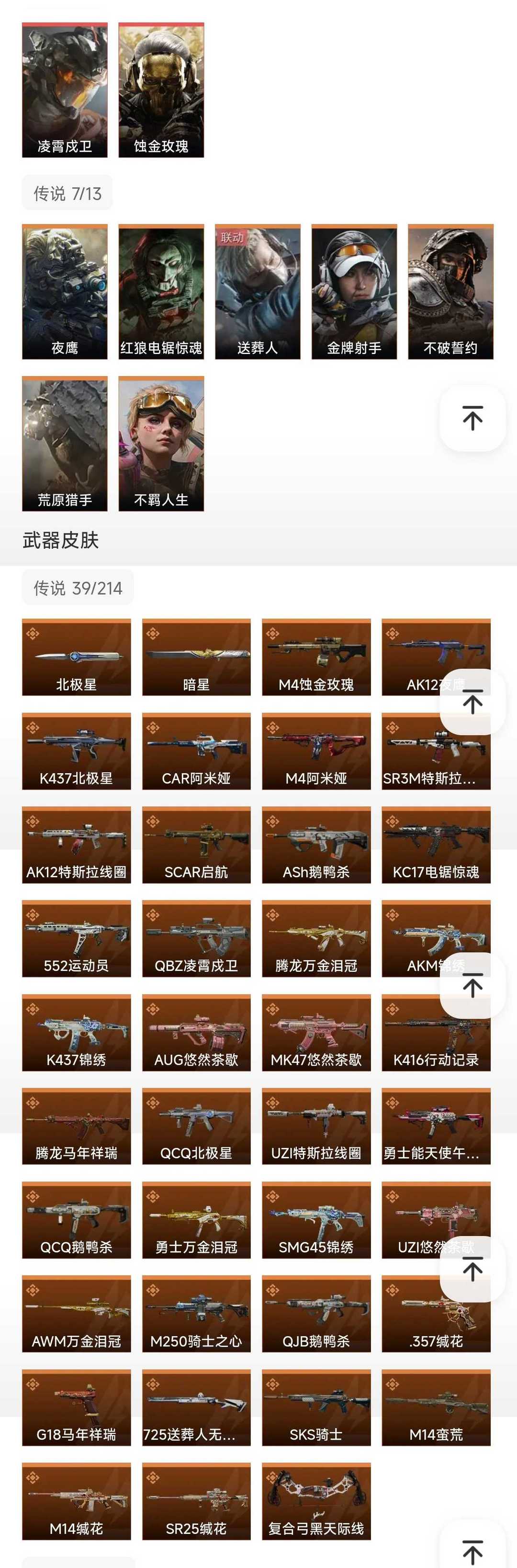皮肤号 暗星北极星凌霄茂卫,蚀金玫瑰,39款传说枪皮