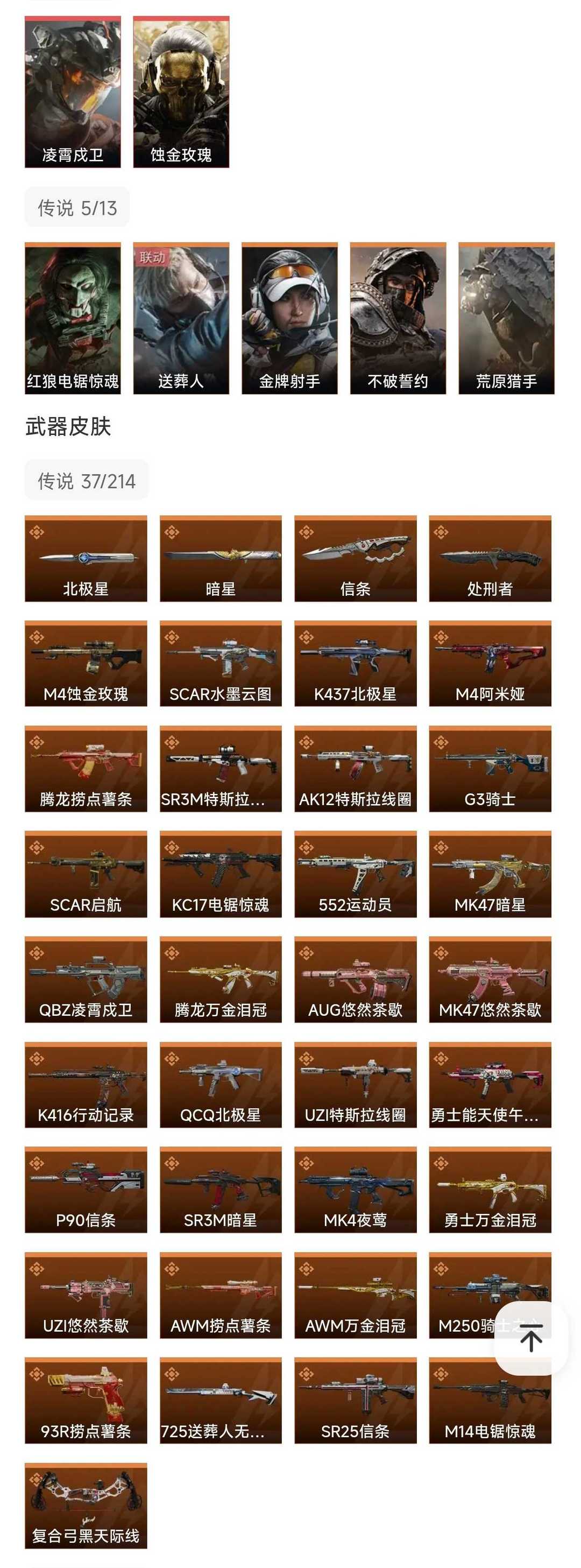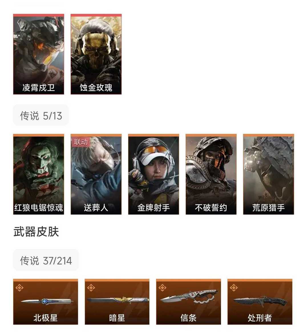 皮肤号 暗星信条北极星凌霄茂卫,蚀金玫瑰,37款传说枪皮