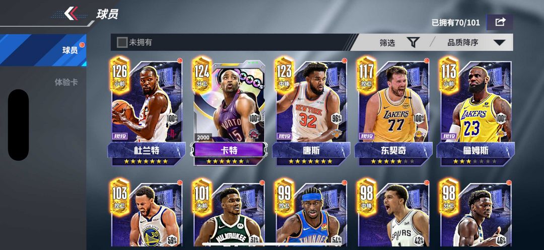 典藏卡特❤️东契奇❤️唐斯❤️杜兰特❤️詹姆斯10几个橙卡❤️❤️不要动资源❤️请勿骂人挂9