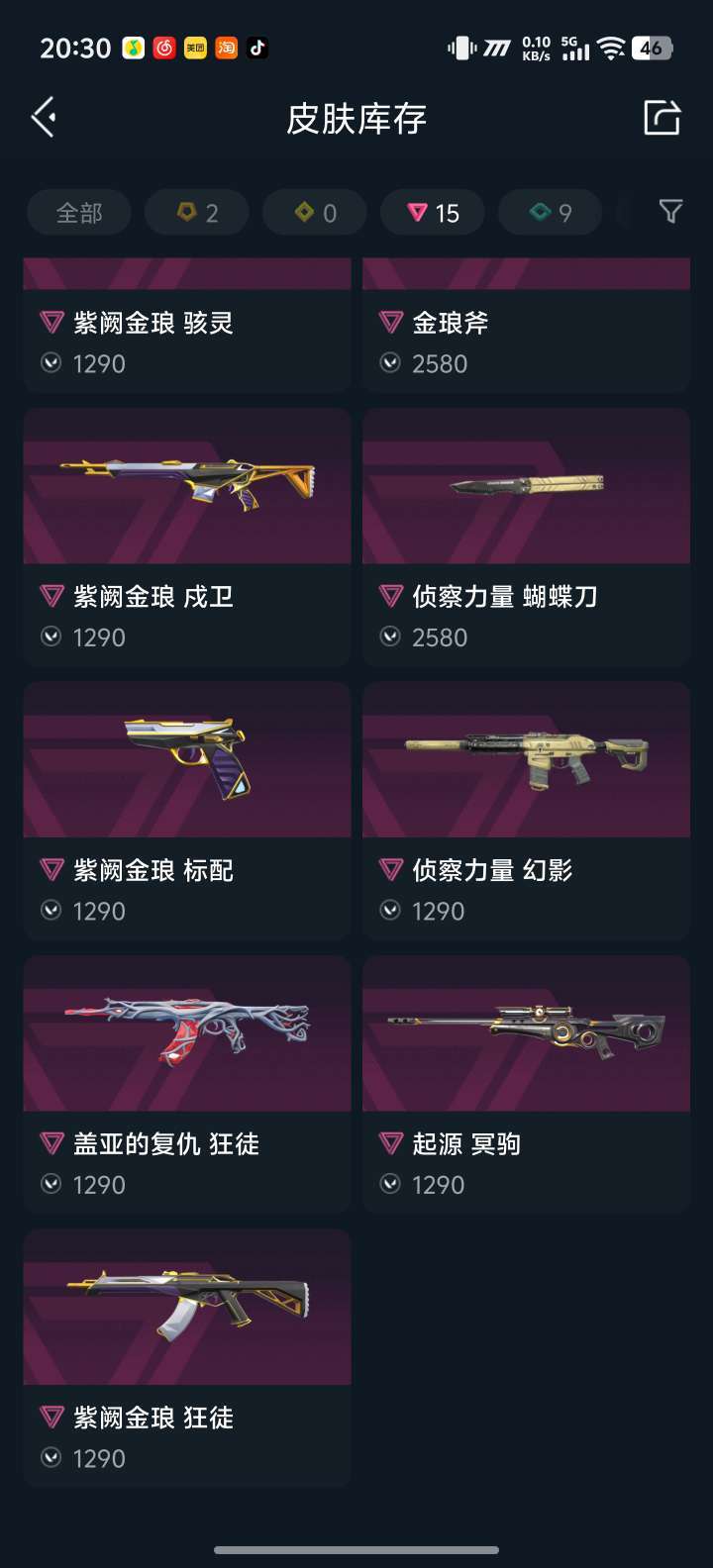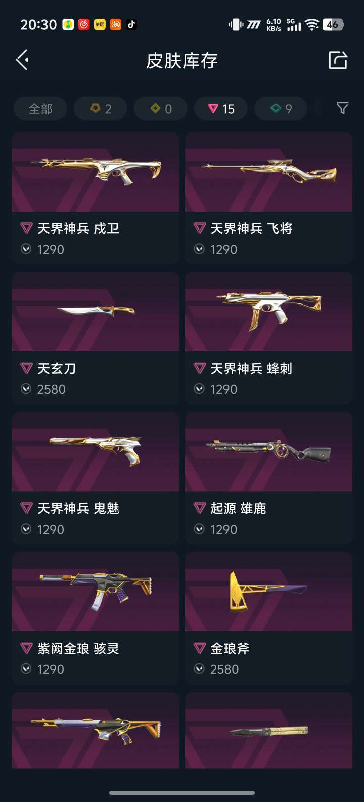紫金套侦查天界套vct爪刀起源大狙狮子正义神话可排位,大部分皮肤都已经升级到点不顶号,开挂必追责