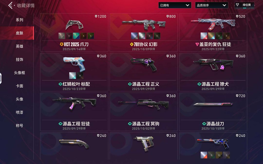 Vct爪刀全炫彩❤️781协议幻影❤️盖亚狂徒❤️全满级❤️铂金