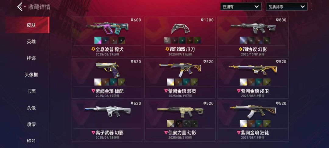 25级收藏家 紫阙金琅全套 VCT爪刀 781协议幻影 全息波普獠犬 离子武器幻影 盖亚狂徒