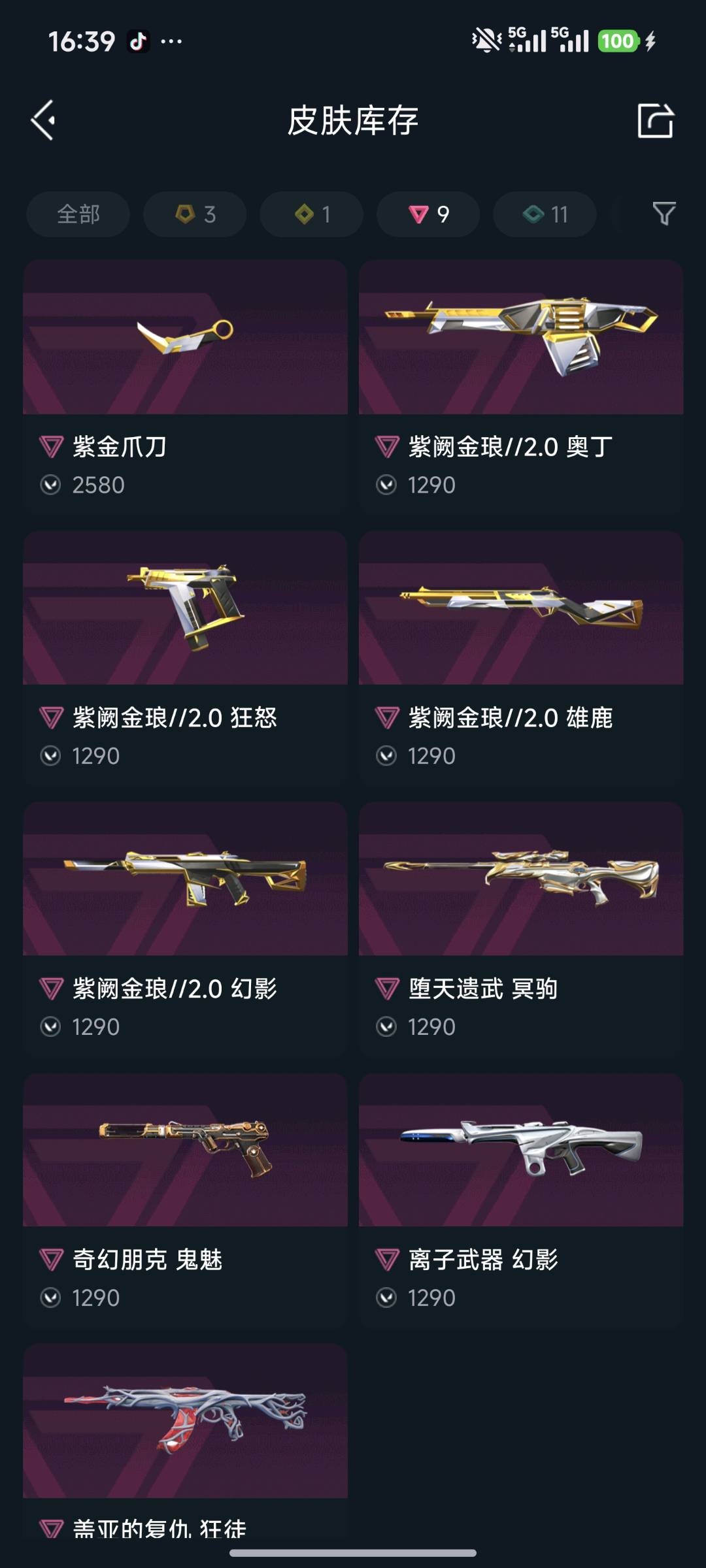 VCT爪刀⭐️紫阙套装⭐️满级盖亚显卡狂徒⭐️781獠犬⭐️离子幻影⭐️超限正义