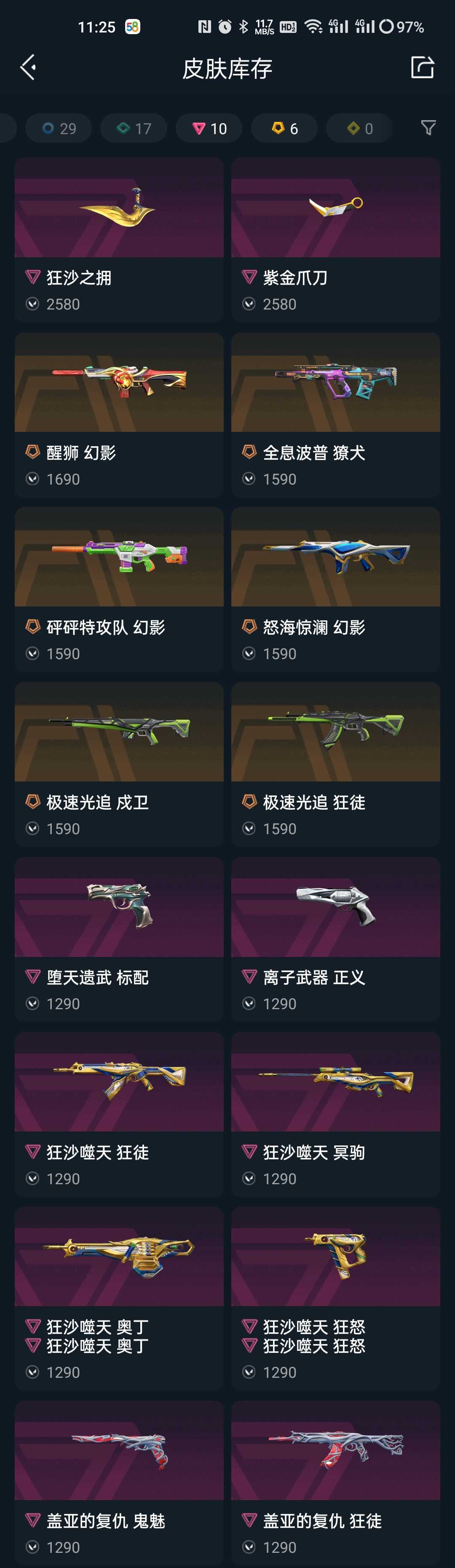 观察期紫金爪刀⭐狂沙套⭐盖亚狂徒鬼魅⭐极速光追狂徒戍卫⭐怒海惊澜醒狮砰砰幻影⭐全息獠犬⭐堕天标配离子