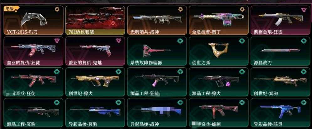 观察期VCT爪刀⭐781协议套装⭐盖亚狂徒鬼魅⭐紫金狂徒⭐光明哨兵战神⭐全息波普奥丁⭐特效拉满