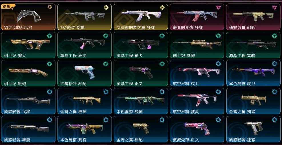观察期VCT爪刀⭐侦查力量幻影⭐盖亚狂徒⭐艾沃利的梦之翼狂徒⭐781协议幻影⭐特效全满