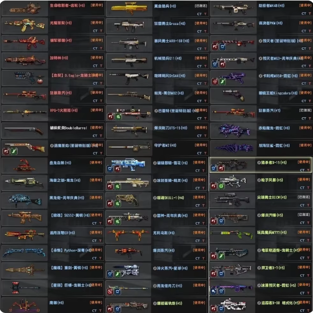 装备描述:57+弑神+深渊+盘龙+邪皇+海皇+电锯+末日骑士5后2伤1连+黑龙炮+金红+斧子等30多把怀旧武器
