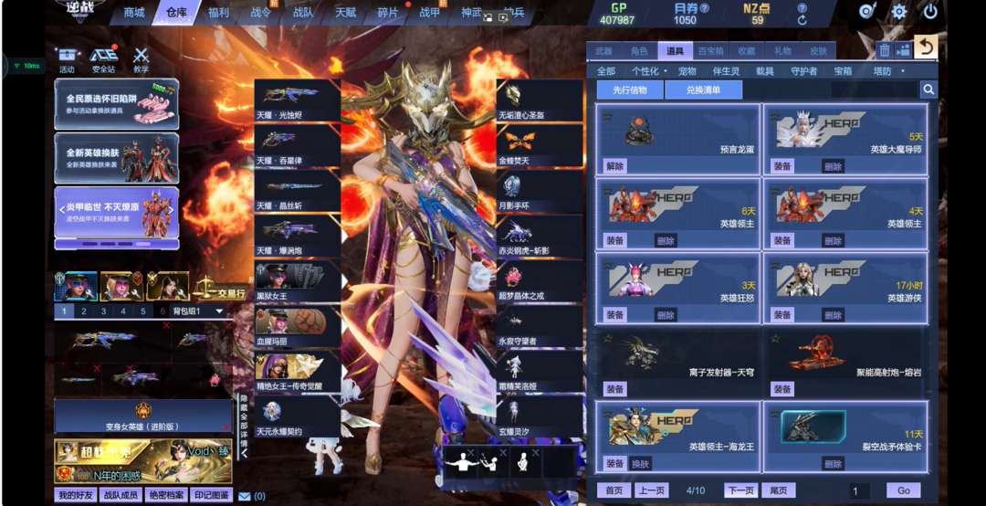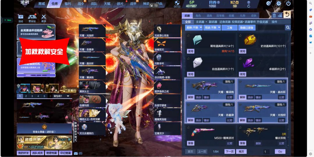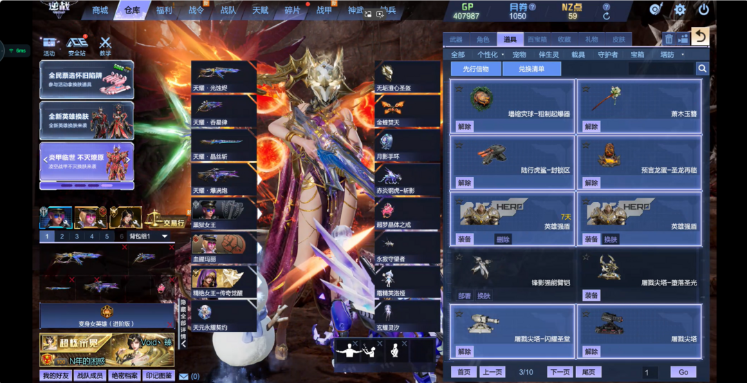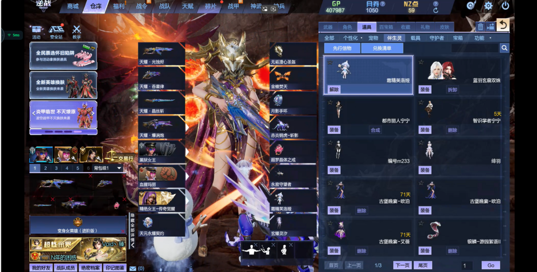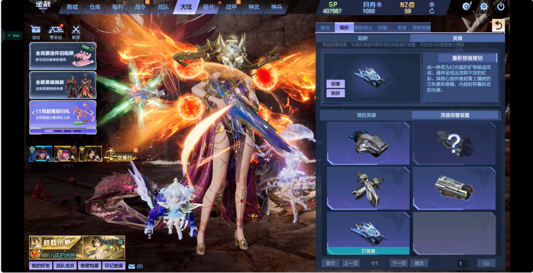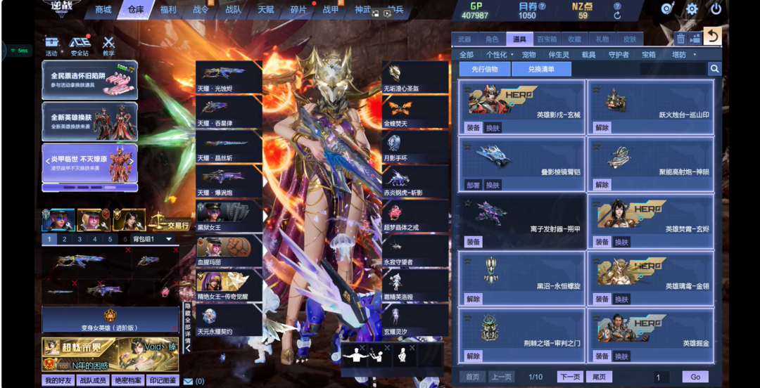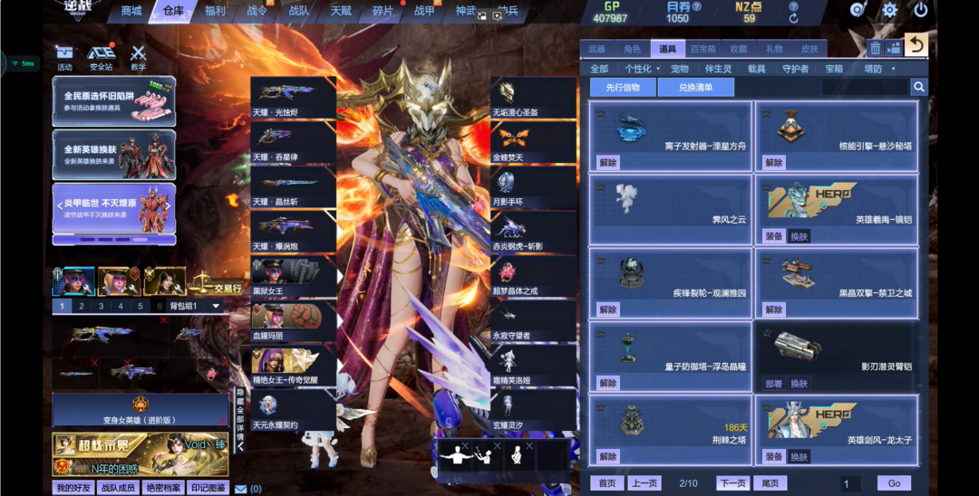 *精绝女王+元,满配天耀,霜霆战盔,叠影棱镜臂铠,焚霄-玄烬,影戍-玄械,璃鸢-金翎,掘金,双连携