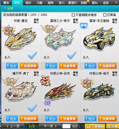爆天甲(奥丁),终众(吕布紫夜+倚天),终极麦凯伦(屠龙),雷诺之力(索尔),黑域电摩(张飞)等。