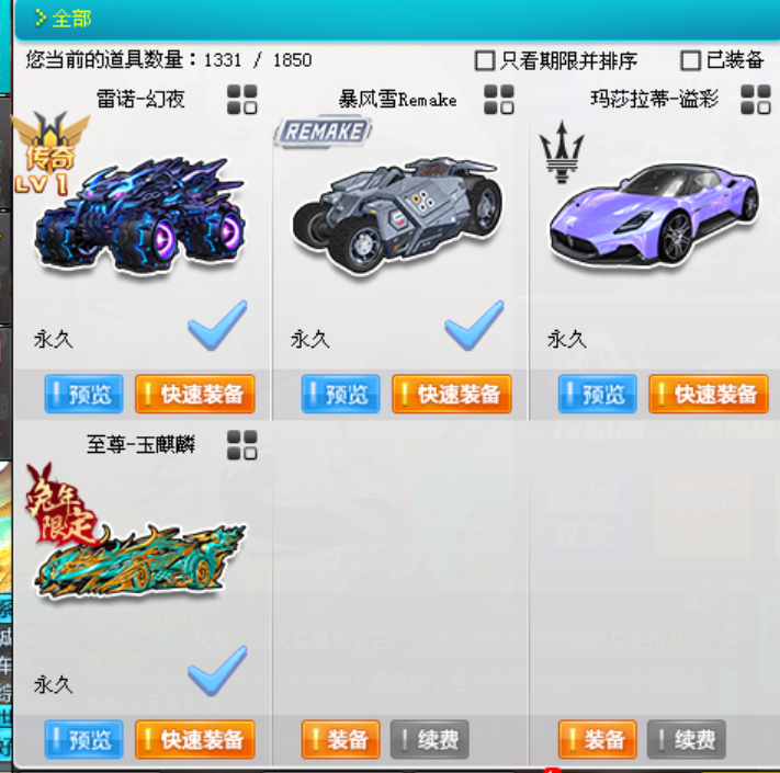 装备描述:【玉麒麟带皇族】满改双四玉麒麟❤王者剃刀❤暴风雪❤小吕布10星河绘画师❤男女质量小衣柜
