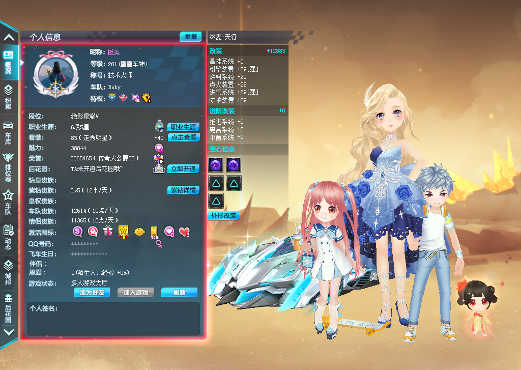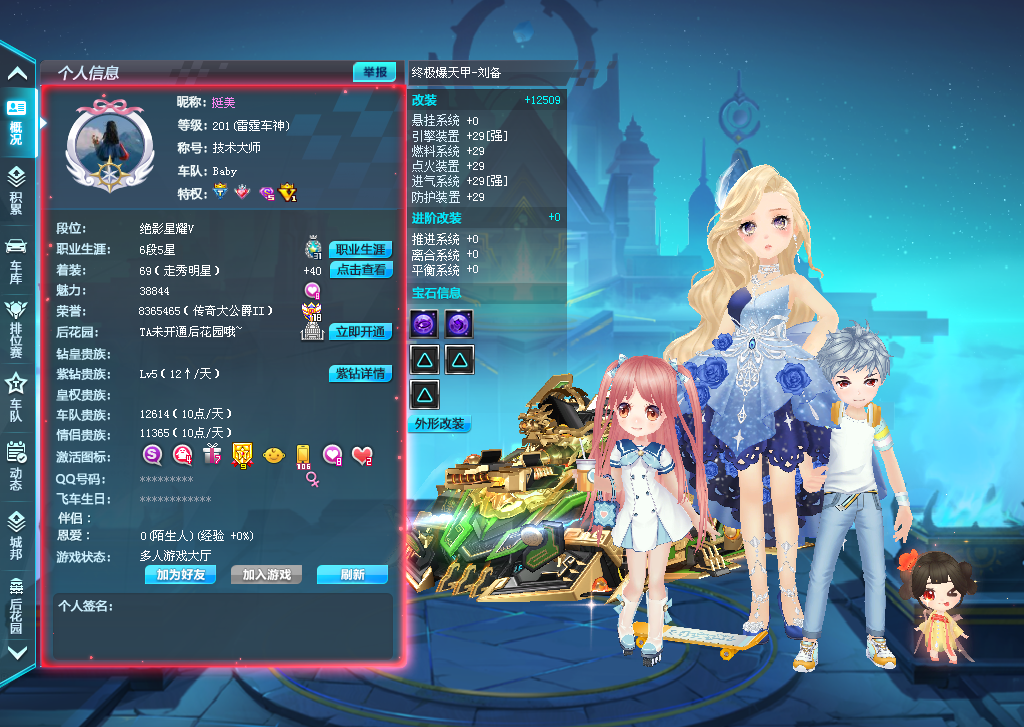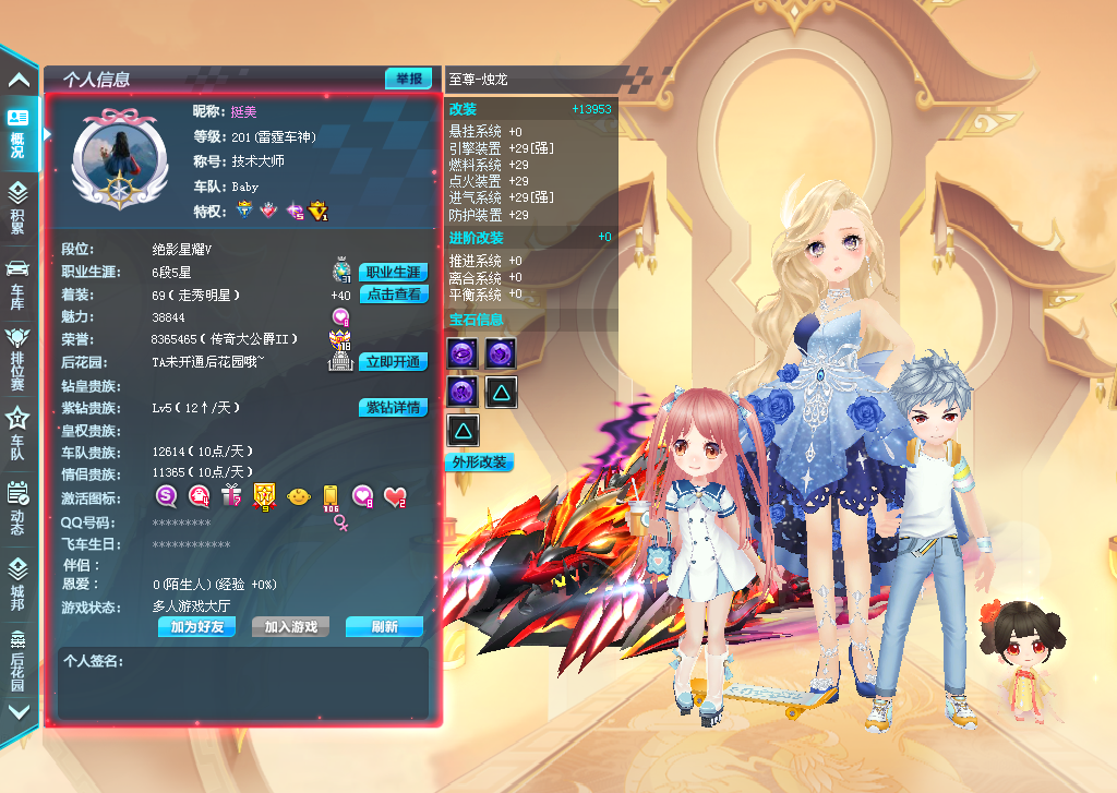 装备描述:至尊-烛龙= 终极迈凯伦-天行= 终极爆天甲-刘备=诺雷诺之力=龙之传人=终极银天使 强化满级小兰仙=哪吒三太子=小贵妃 禁止利用账号进行开挂、使用辅助违规软件诈骗等违规操作。