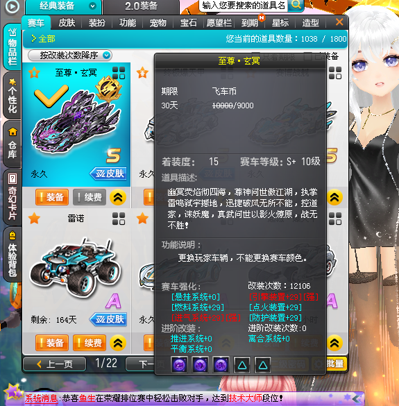装备描述:X次元玄武/终极爆天甲逍遥/塞博战舰全4级宝石全29满改雷诺