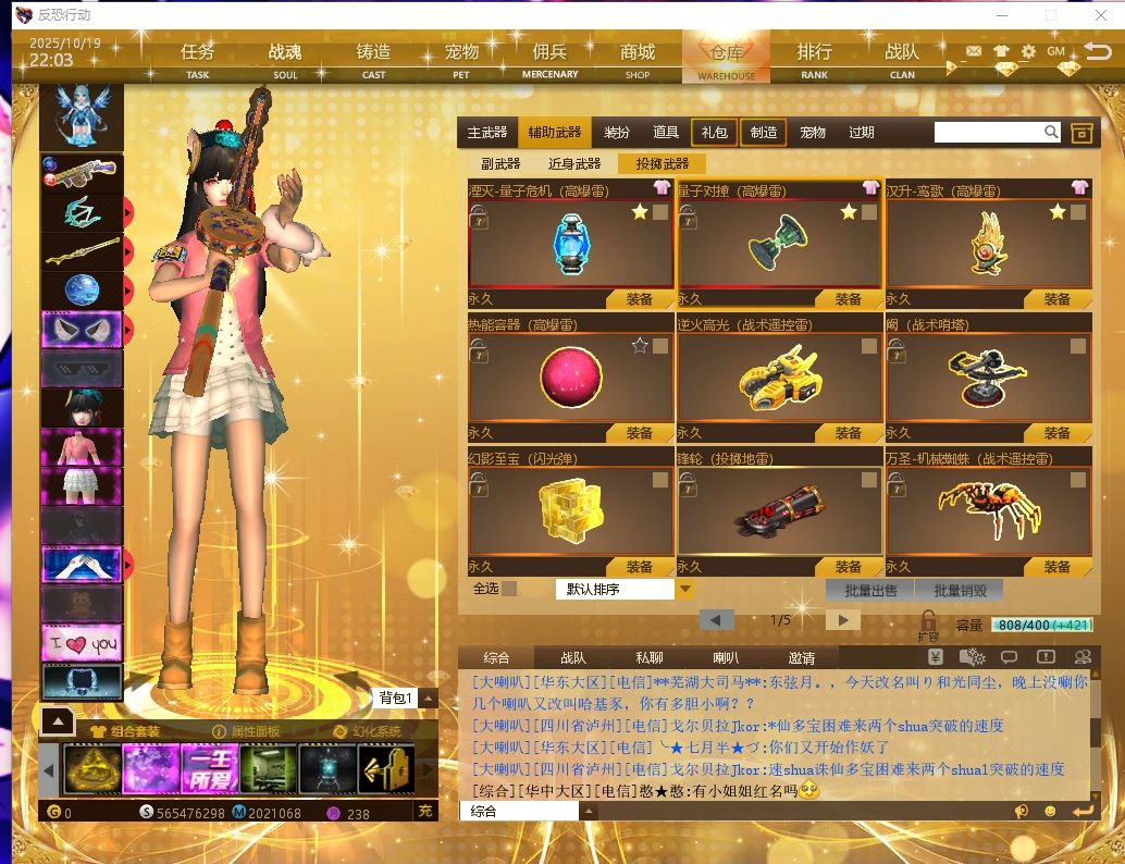 装备描述:十级艾丽莎 16减20弱 长庚 辉耀 李白惊悚 P90 伊西丝之慈 鬼语三件套 免死套 电玩套 燃