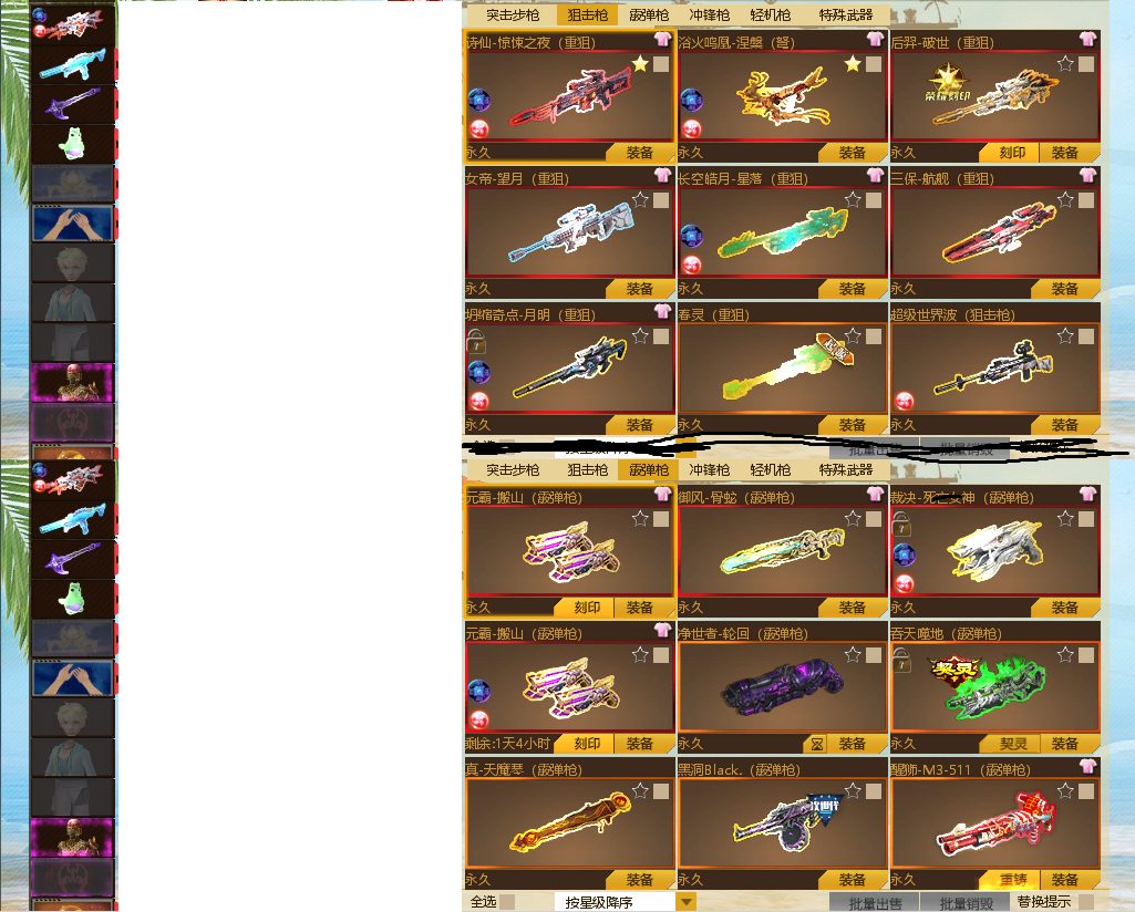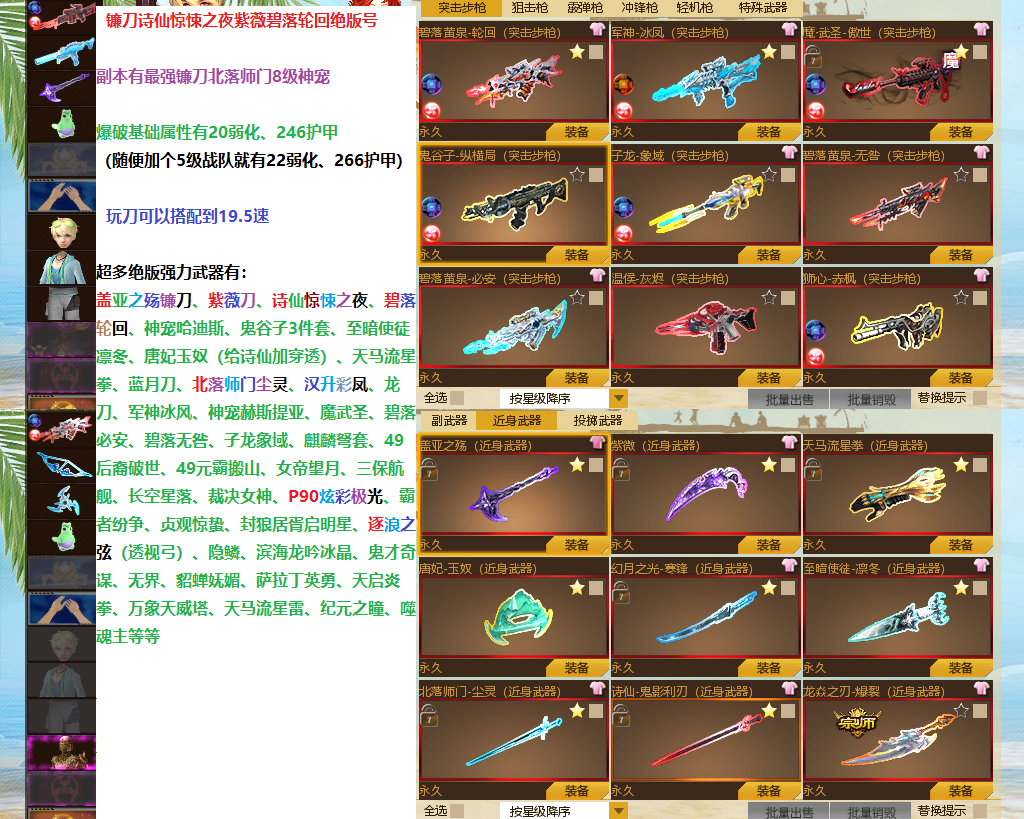 全是绝版武器号+镰刀碧落轮回紫薇彩凤诗仙惊悚之夜等+具体看图