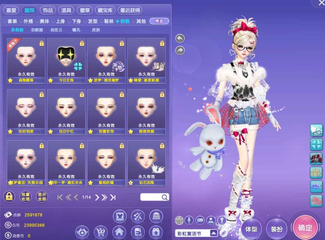 一舞时光金钻妖瞳灵动欲三脸兔子千灵狐夜行脸极光无限染色套主题4.8万女号