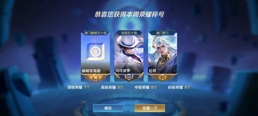 本周在榜小国标50强马克波罗⭐️巅峰万强1000名闪电框⚡️无双贵族满皮国服❤️禁巅峰⭐️怪盗基德