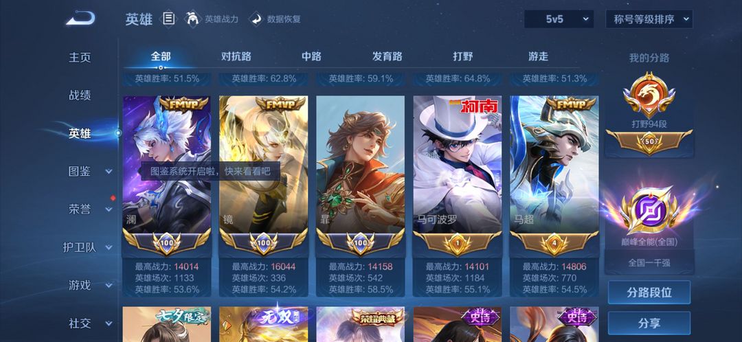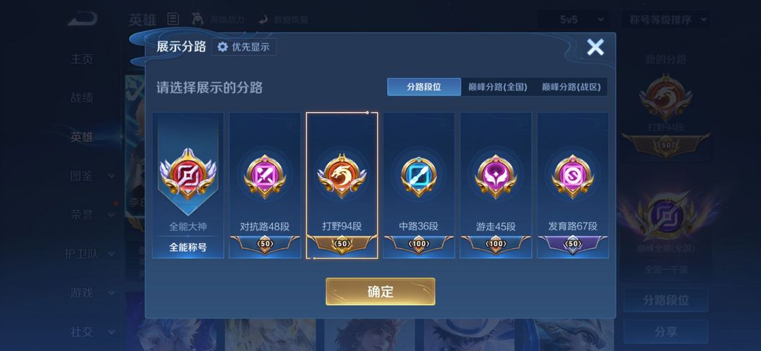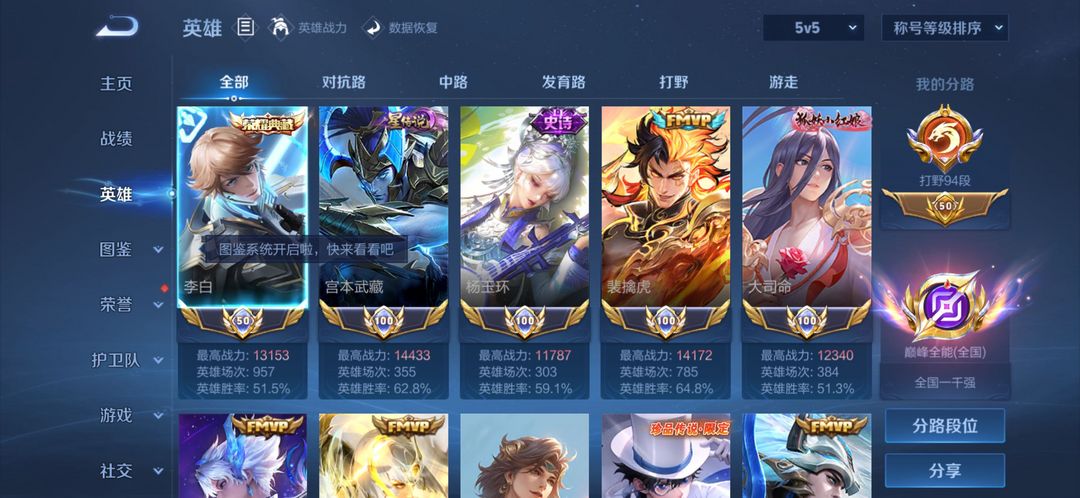 限制: 租号10次及以上 |装备描述:94段打野带小魔方❤️7小国 镜 澜 老虎 宫本 李白等无敌带妹号