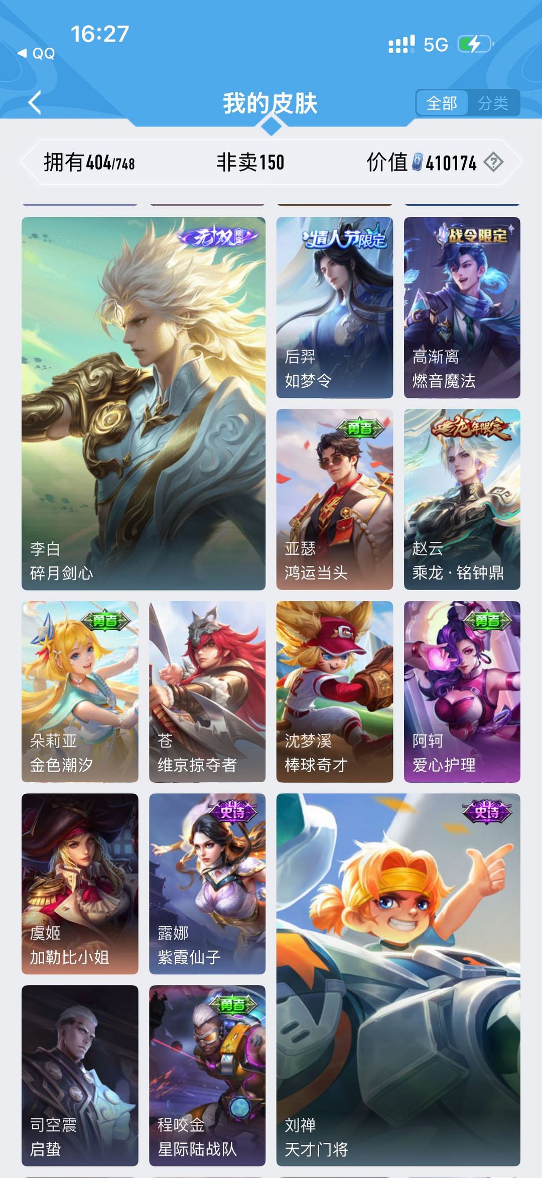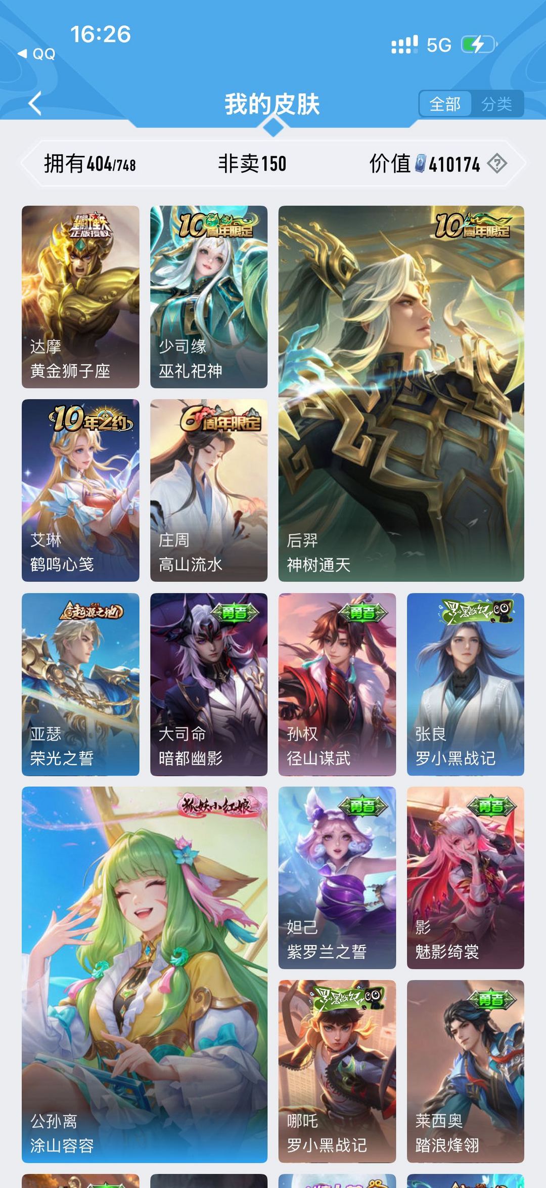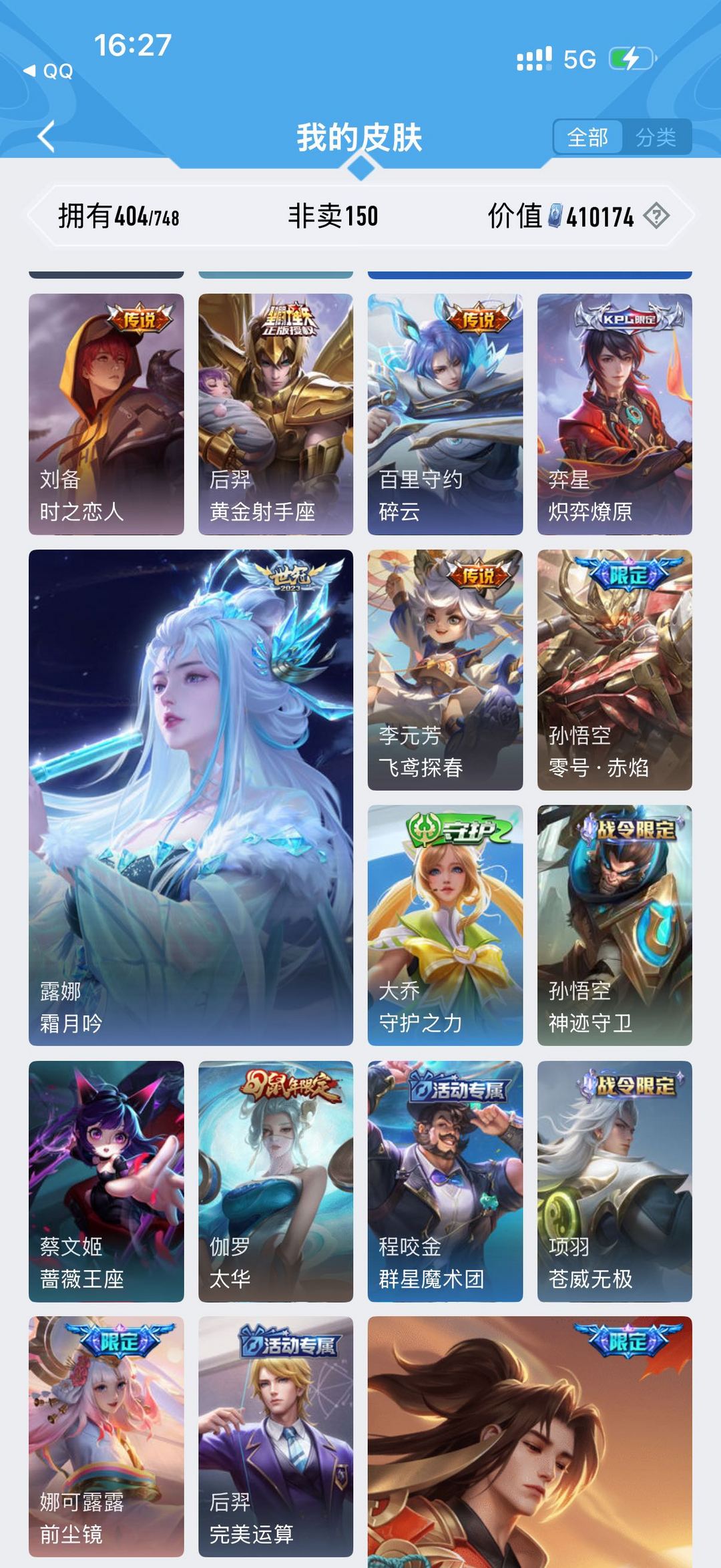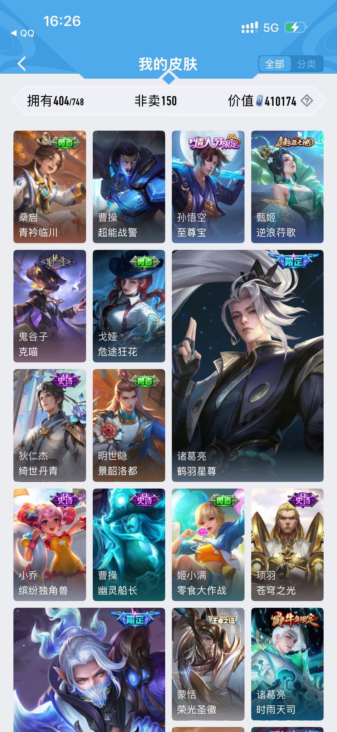 李白、耀的无双、蛇年全套、诸葛情人节、牛年限定、凤求凰等