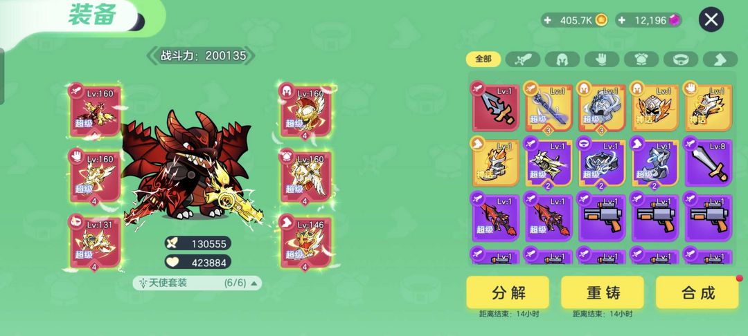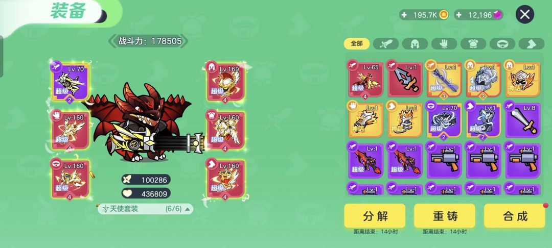 球球大作战突击队最高20万战,新武器加特林红色天使套装六星魔龙龙吟,长租更便宜