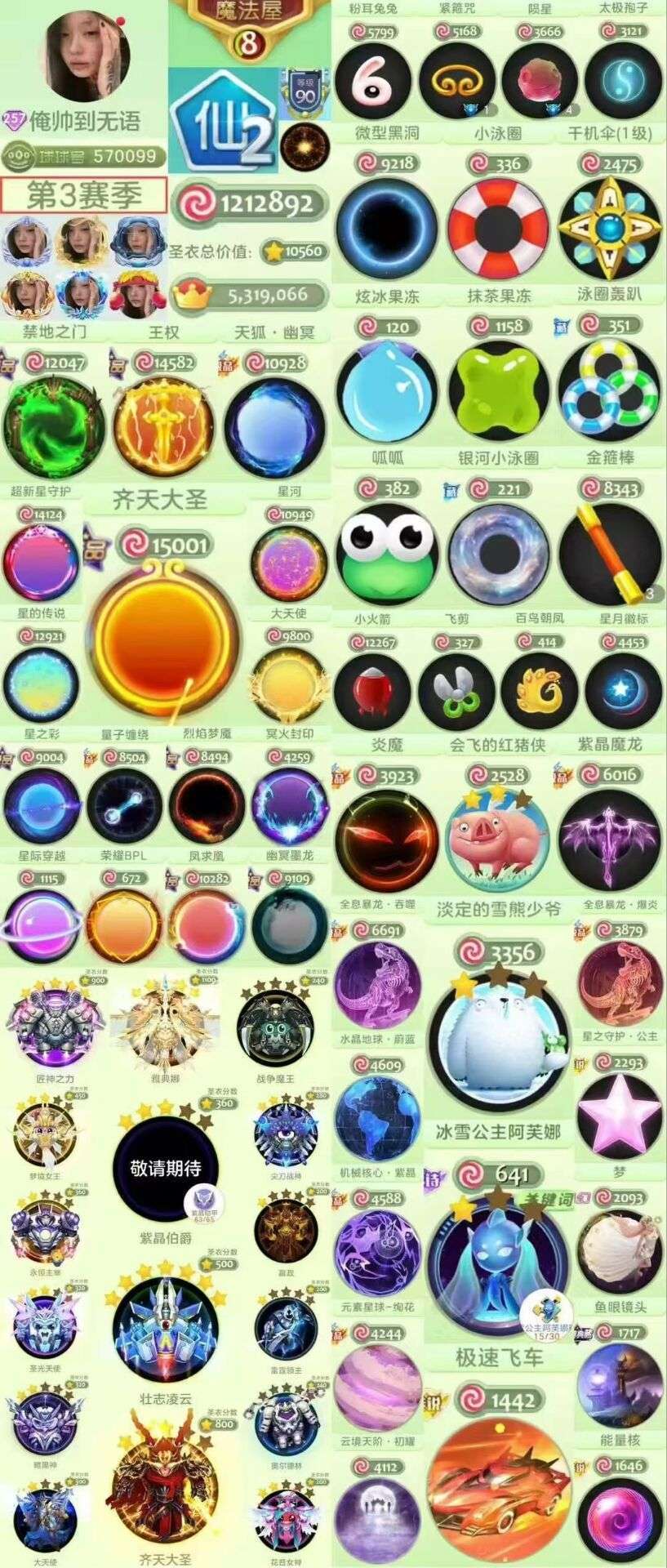 ID男助演 高赛季 泳圈 金箍棒等热门孢子应有尽有