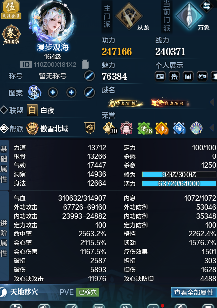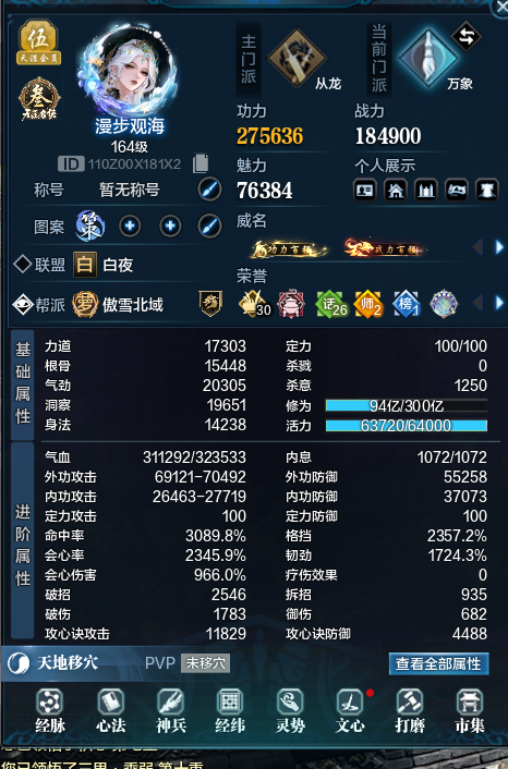 4+4,27.8万功力万象,魅力76000,攻击镇派全10,7特效,会伤1170,满天外凤舞