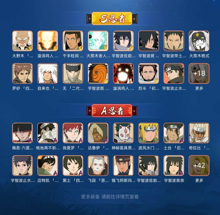 装备描述:38S✨57A✨314忍✨忍战带土✨大筒木舍人✨二代目无✨鬼灯幻月