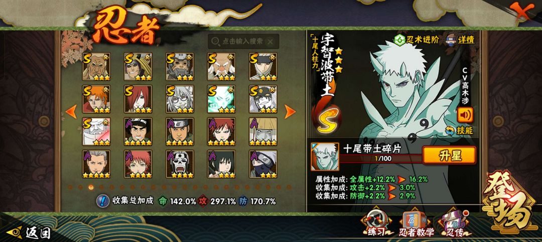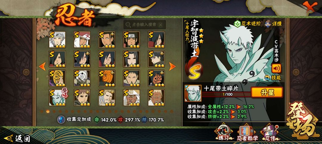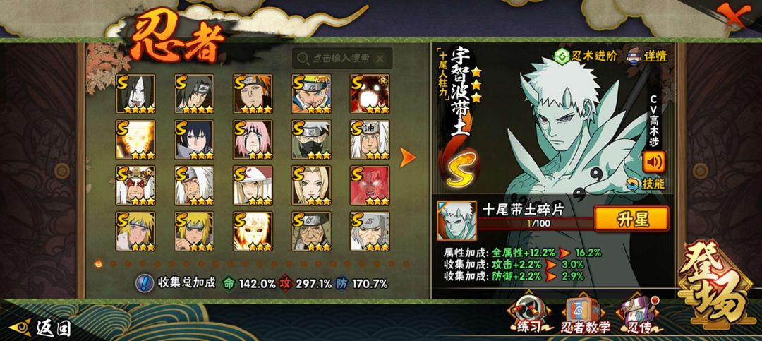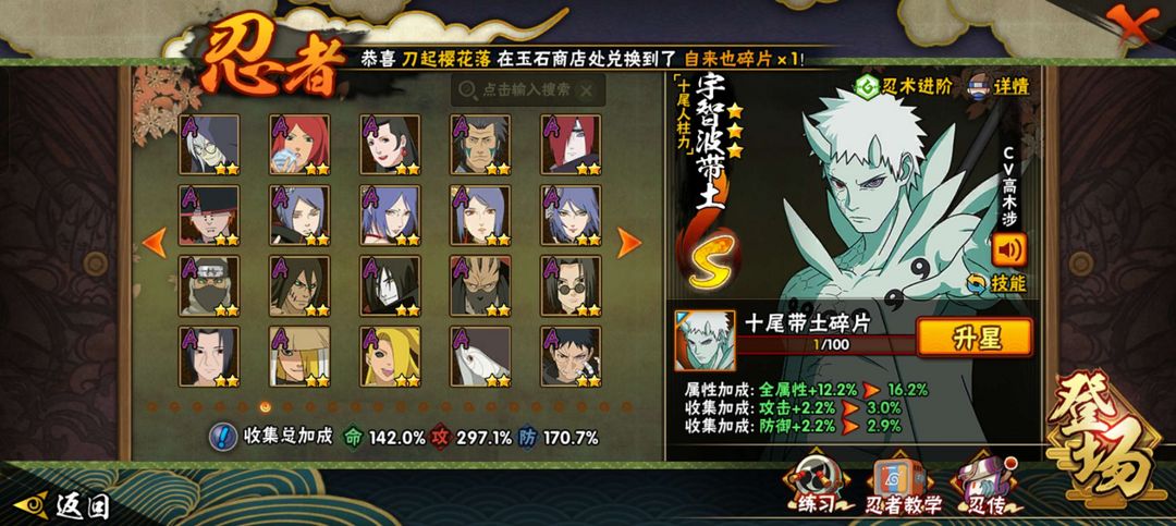装备描述:51S✨78A✨十尾带土✨神驹阿斯玛✨全高招忍者✨全通行证忍者✨漂泊全系列忍者✨