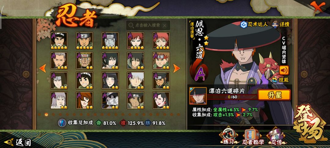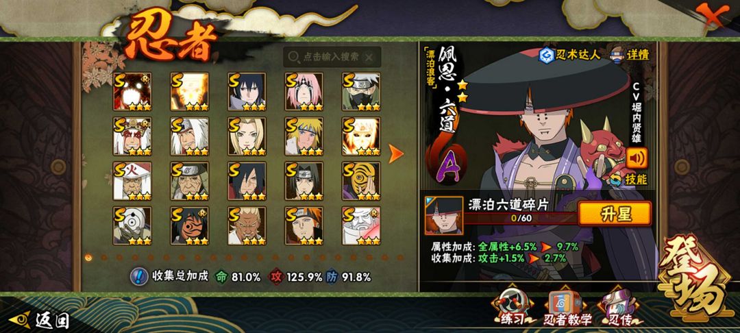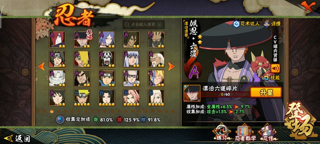 安卓VX死水忍法帖sa✨179忍者20S+36A✨忍战面具忍法帖系列✨漂泊小楠佩恩 卑留乎