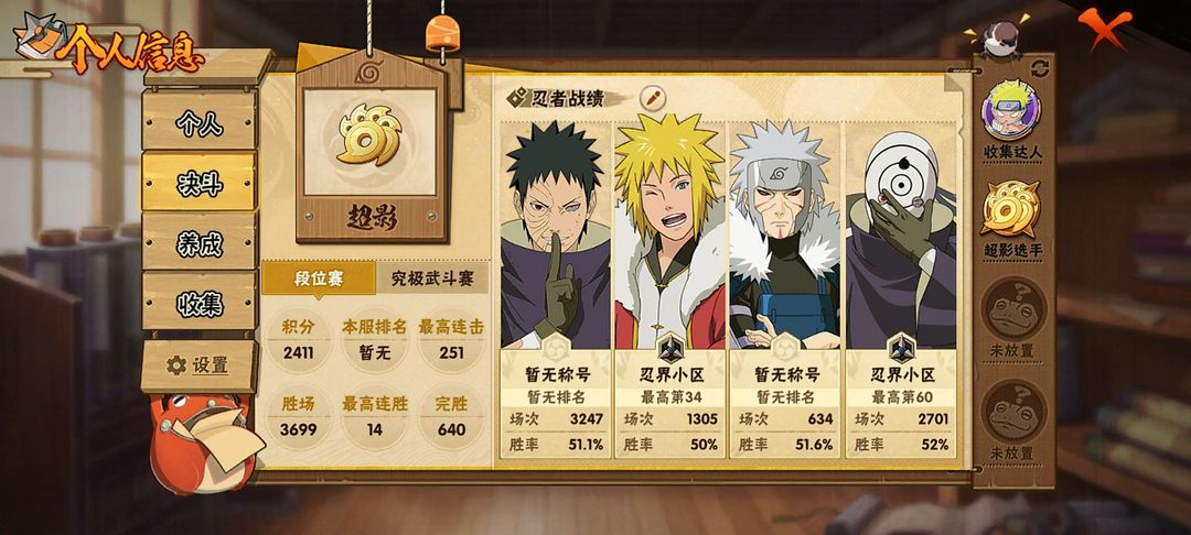 装备描述:喜欢的兄弟可以加一下收藏,号主还在玩,后续有更多好玩的新忍者,也恳请大家文明租号,回头客私聊可有折扣
