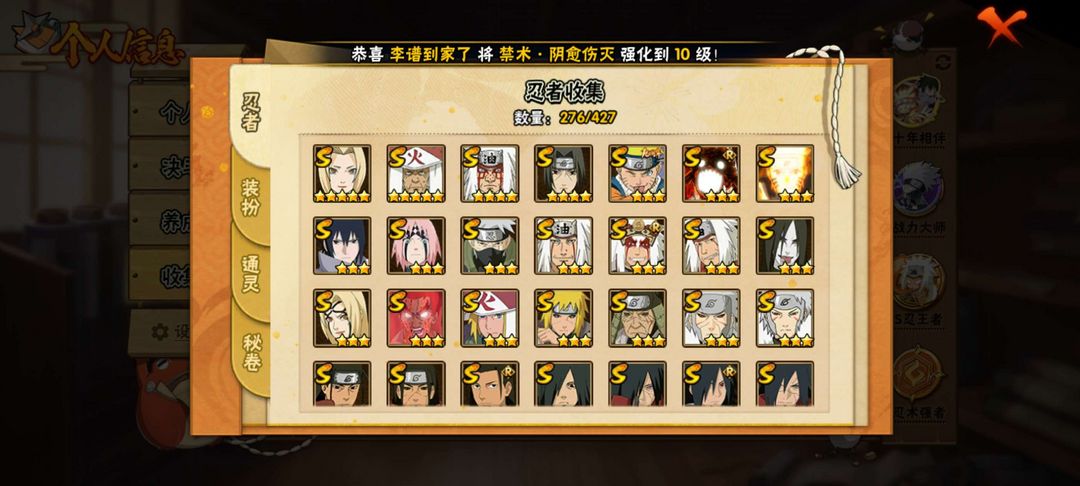 2340万战力49S✨️59A6尾鸣人✨️须佐卡卡西✨️白面具✨️秽土二带✨️秽土柱间✨️长门熊猫