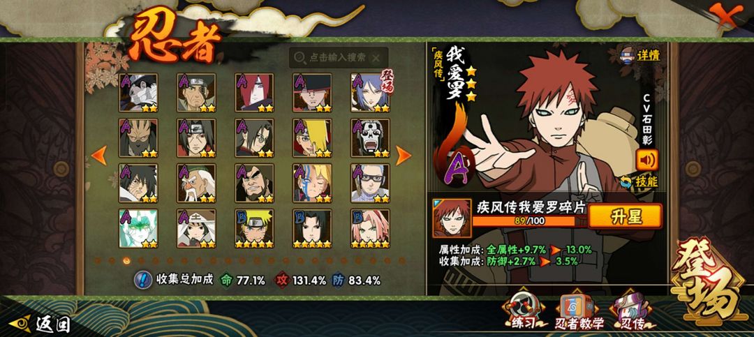 装备描述:21s36a1122万战力可带秘境暴怒带土,新春鼬永恒佐,十尾带土,漂泊佩恩,忍战雷,六尾鸣人,死三,死二,解斑,传说自来也
