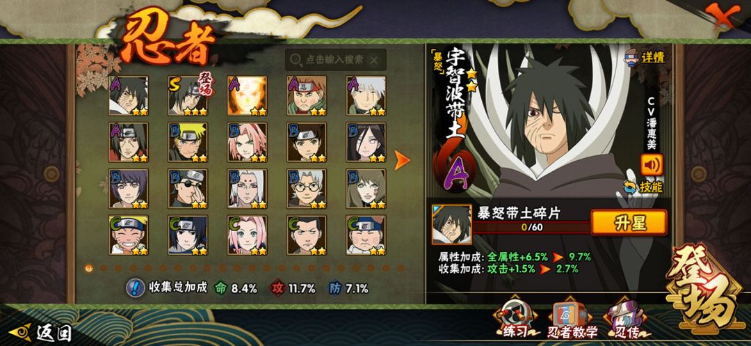 限制: 撤单率<75%才可租用此帐号装备描述:S忍者:宇智波鼬 「须佐能乎」 A忍者:漩涡鸣人 「九尾查克拉」;宇智波鼬 B忍者:春野樱 「疾风传」;漩涡鸣人 「疾风传」;惠比寿;贰 「火之意志继承者」;天天 「疾风传」;君麻吕;日向花火 「武当宗师」;御手洗红豆 C忍者:水木 「咒印」;宇智波佐助;犬塚牙;多由也;漩涡鸣人;秋道丁次;勘九郎;日向雏田;手鞠;奈良鹿丸;日向花火;山中井野;鬼童丸 「秽土转生」;静音;左近右近;漩涡鸣人 「忍者学员」;天天;油女志乃;次郎坊;春野樱