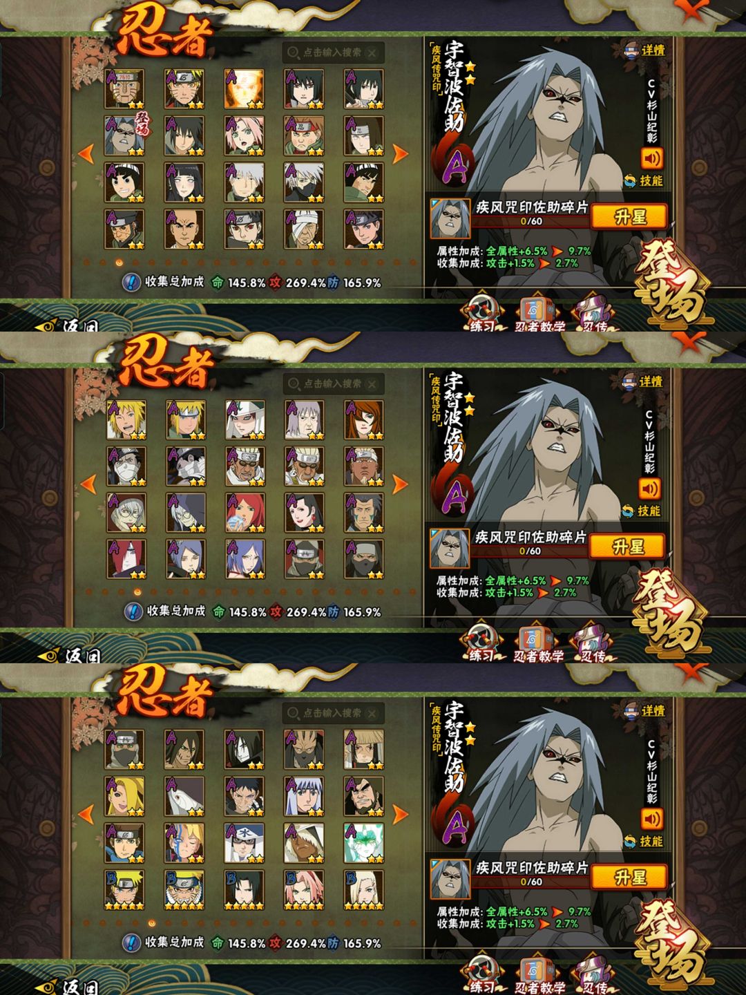 限制: 撤单率<40%才可租用此帐号装备描述:S忍者:宇智波鼬 「秽土转生」;宇智波止水 「须佐能乎」;宇智波斑 「秽土转生·解」;纲手 「百豪」;千手扉间 「秽土转生」;大筒木桃式;药师兜 「仙人模式」;千手柱间 「木叶创立」;漩涡鸣人 「九喇嘛连结」;大蛇丸;佩恩 「天道」;艾 「三代目雷影」;自来也 「舞之豪杰」;神秘面具男 「红夜之刃」;漩涡鸣人 「暴怒·第六尾」;宇智波鼬 「须佐能乎」;宇智波带土 「忍界大战」;神秘面具男;波风水门;罗砂 「四代目风影」;自来也 「仙人模式」;大野木 「忍界大战」;艾 「忍界大战」;自来也 「传说中的三忍」;纲手;千手柱间 「秽土转生」;半藏 「秽土转生」;“宇智波斑” 「白面具」;春野樱 「忍界大战」;大筒木舍人 「最终章」;自来也;宇智波佐助 「永恒万花筒」;猿飞日斩 「秽土转生」;波风水门 「秽土转生」;猿飞日斩;旗木卡卡西 「须佐能乎」;迈特凯 「死门」;宇智波斑;大筒木金式;佩恩·天道 「超」;长门 「秽土转生」;宇智波斑 「木叶创立」;烈斗 「初代目风影」;宇智波斑 「秽土转生」